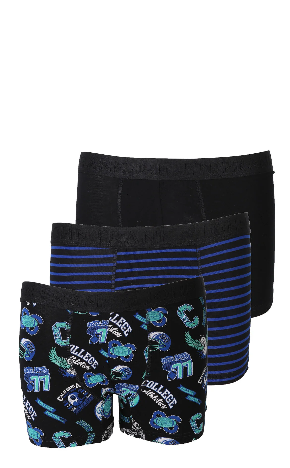 John Frank Çok Renkli Karışık Desenli Normal Bel Pamuk 3'Lü Boxer Set