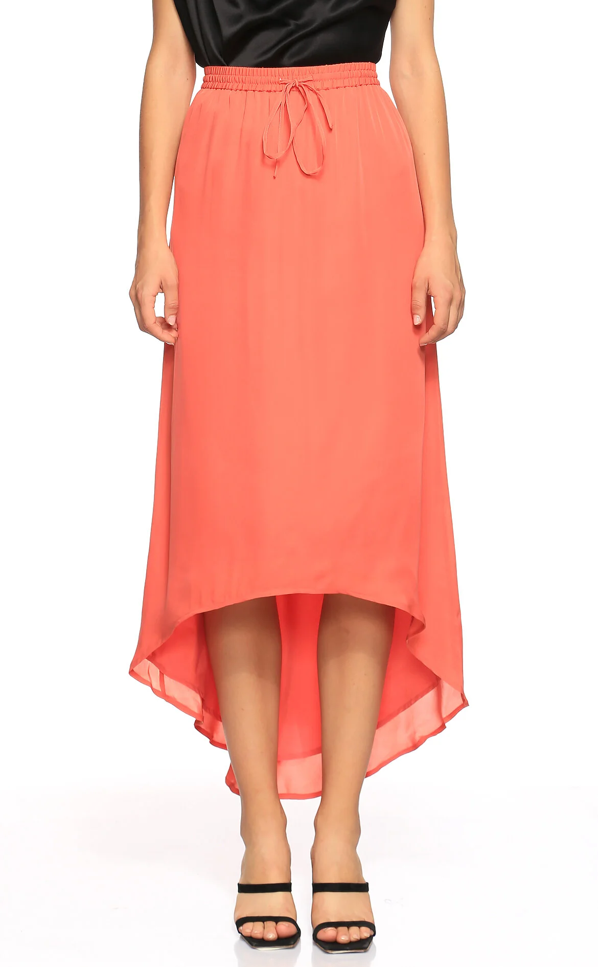 Joie Çok Renkli Asimetrik Lastik Bel Midi Saten Etek