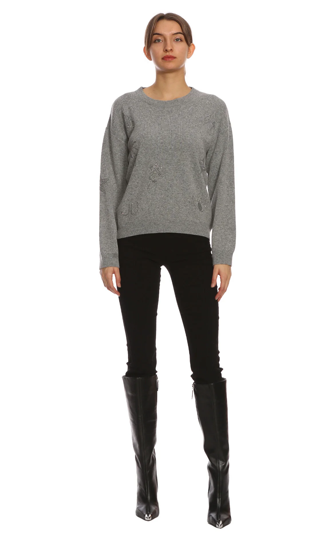 Join Us Gri Karışık Desenli Uzun Kol Bisiklet Yaka Yünlü Kadın Kazak