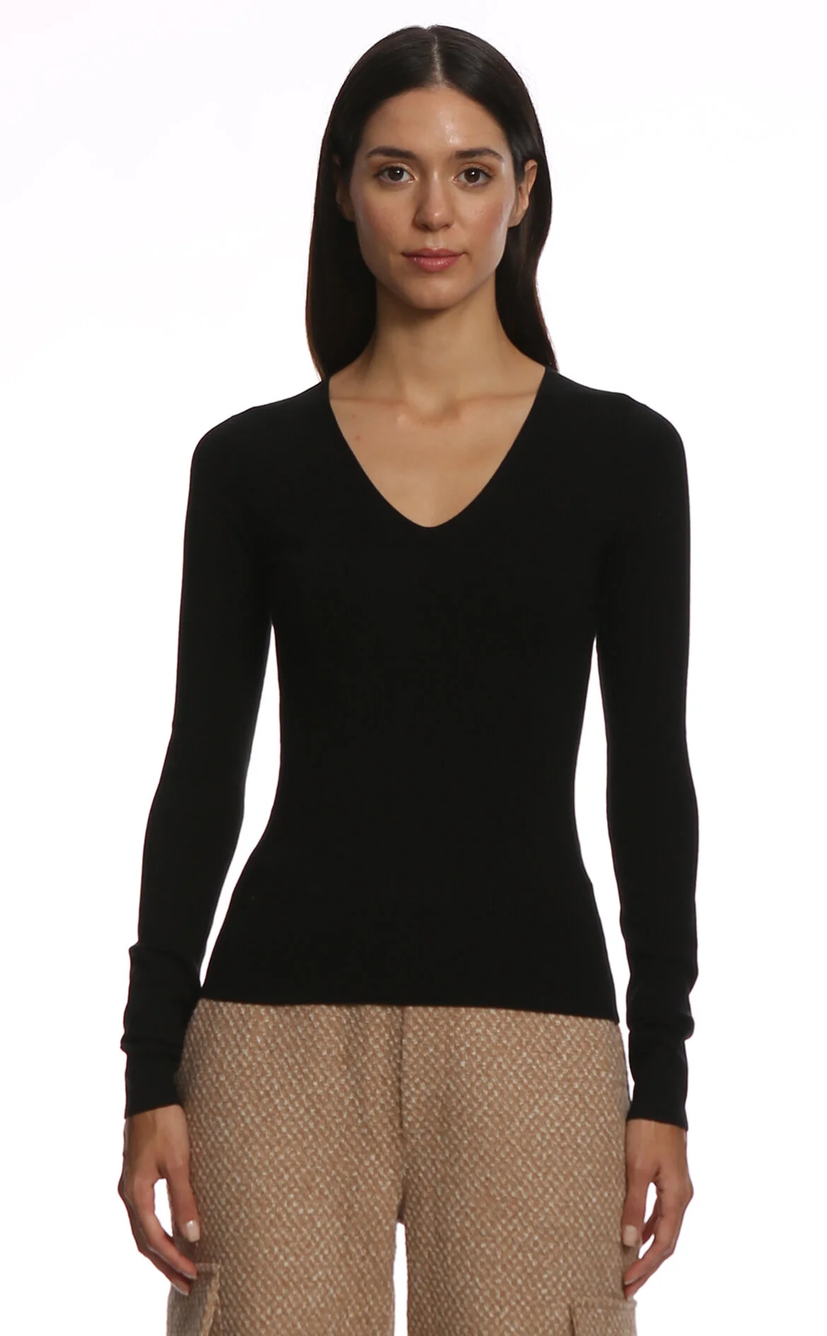 3. Siyah Uzun Kol V Yaka İpek Karışımlı Bluz