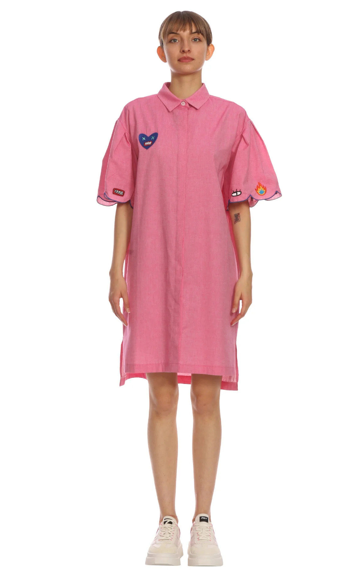 King Naked Pembe Karışık Desenli Kısa Kollu Gömlek Yaka Mini Boy Elbise