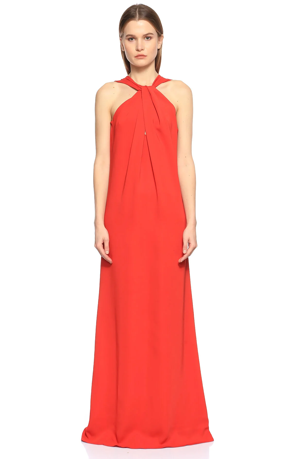 Lanvin Kırmızı Kolsuz Çapraz Yaka Maksi Gece Elbisesi