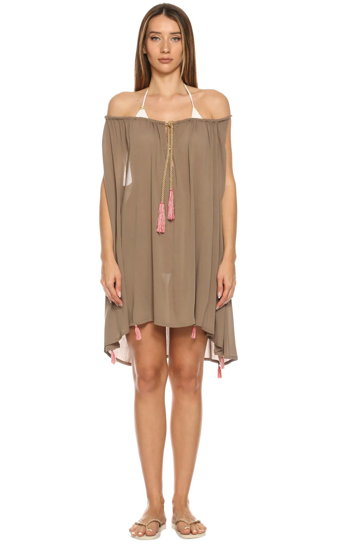 3. Vizon Rengi Geniş Yaka İpek Karışımı Mini Boy Elbise
