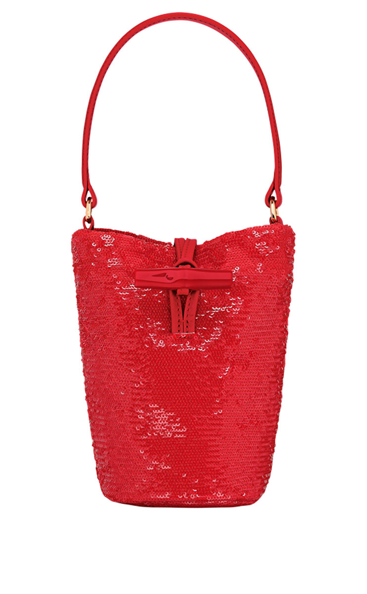 Canlı kırmızı pullarla süslenmiş kanvastan üretilen bu mini Le Roseau kova çanta, her görünüme şenlikli bir ışıltı katan mükemmel bir tatil aksesuarıdır. Ton sür ton bambu tokası, dana derisi süslemesi ve temel eşyalarınız için bir düz cebi ve bir fermuarlı cebi bulunan kompakt bir iç tasarıma sahiptir.