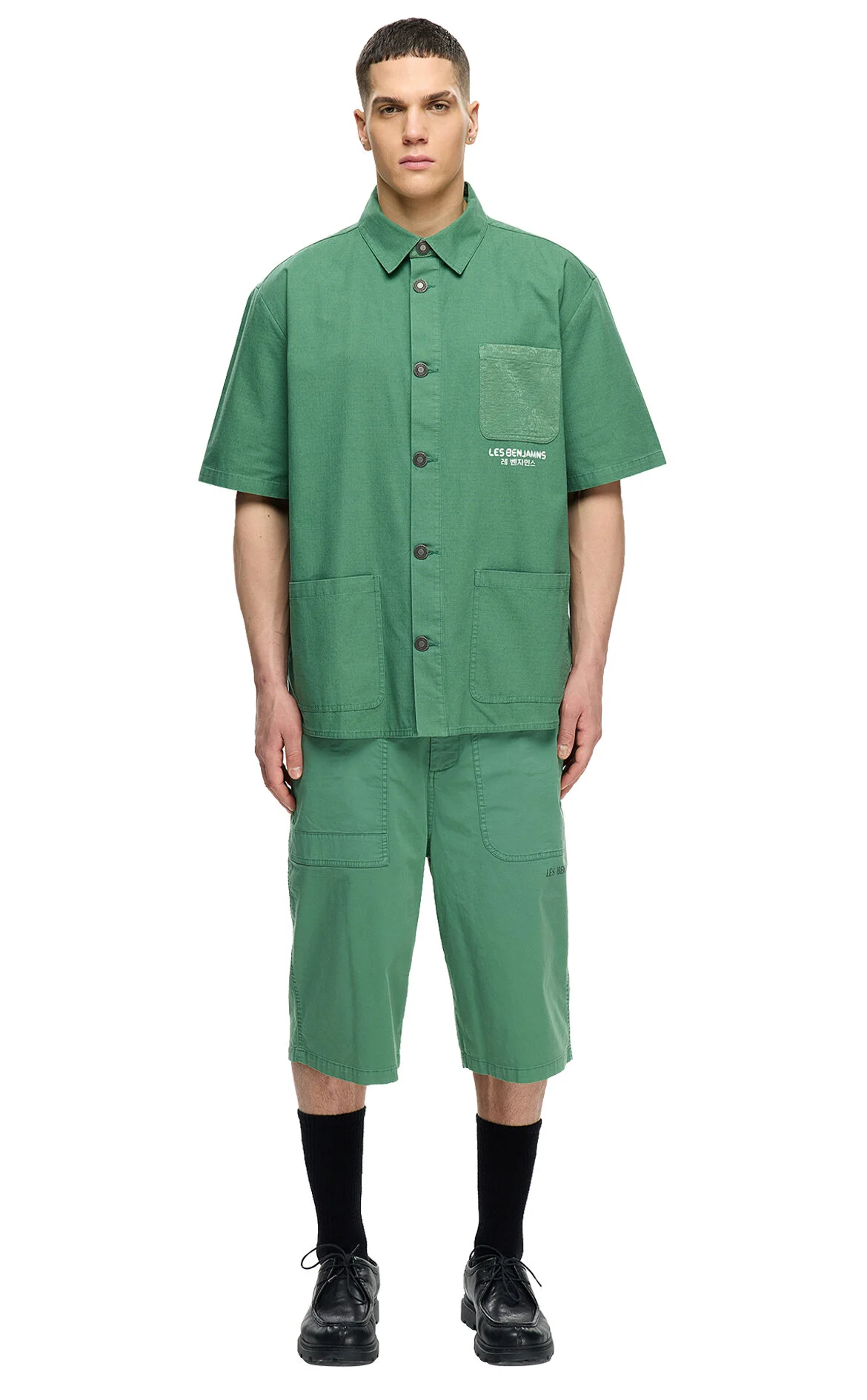Les Benjamins Yeşil Marka Logolu Kısa Kollu Pamuk Gömlek