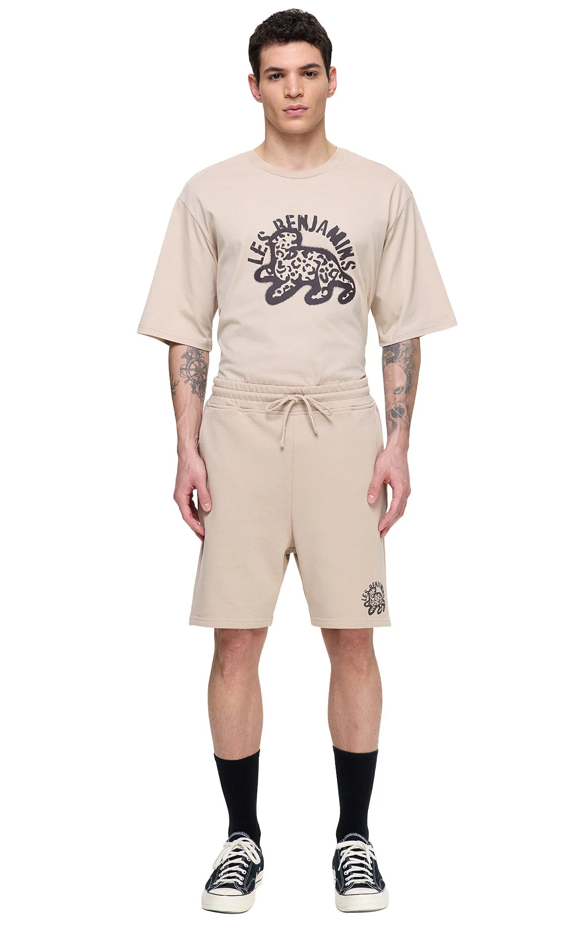 Les Benjamins Bej Logo Baskılı Pamuk Şort