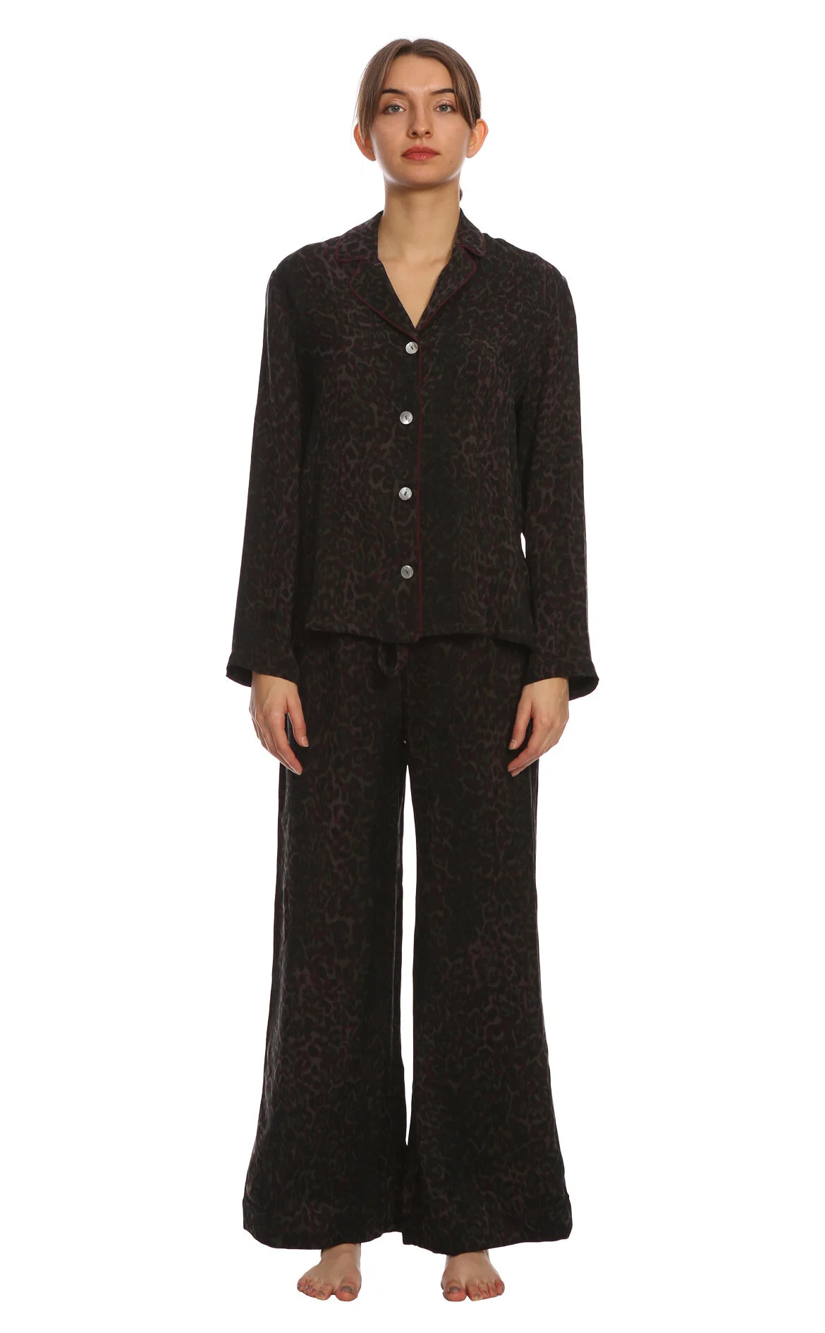 Marais Studio Antrasit Rengi Karışık Desenli Uzun Kol Bol Paça Kadın Gömlek ve Pantolon Pijama Seti