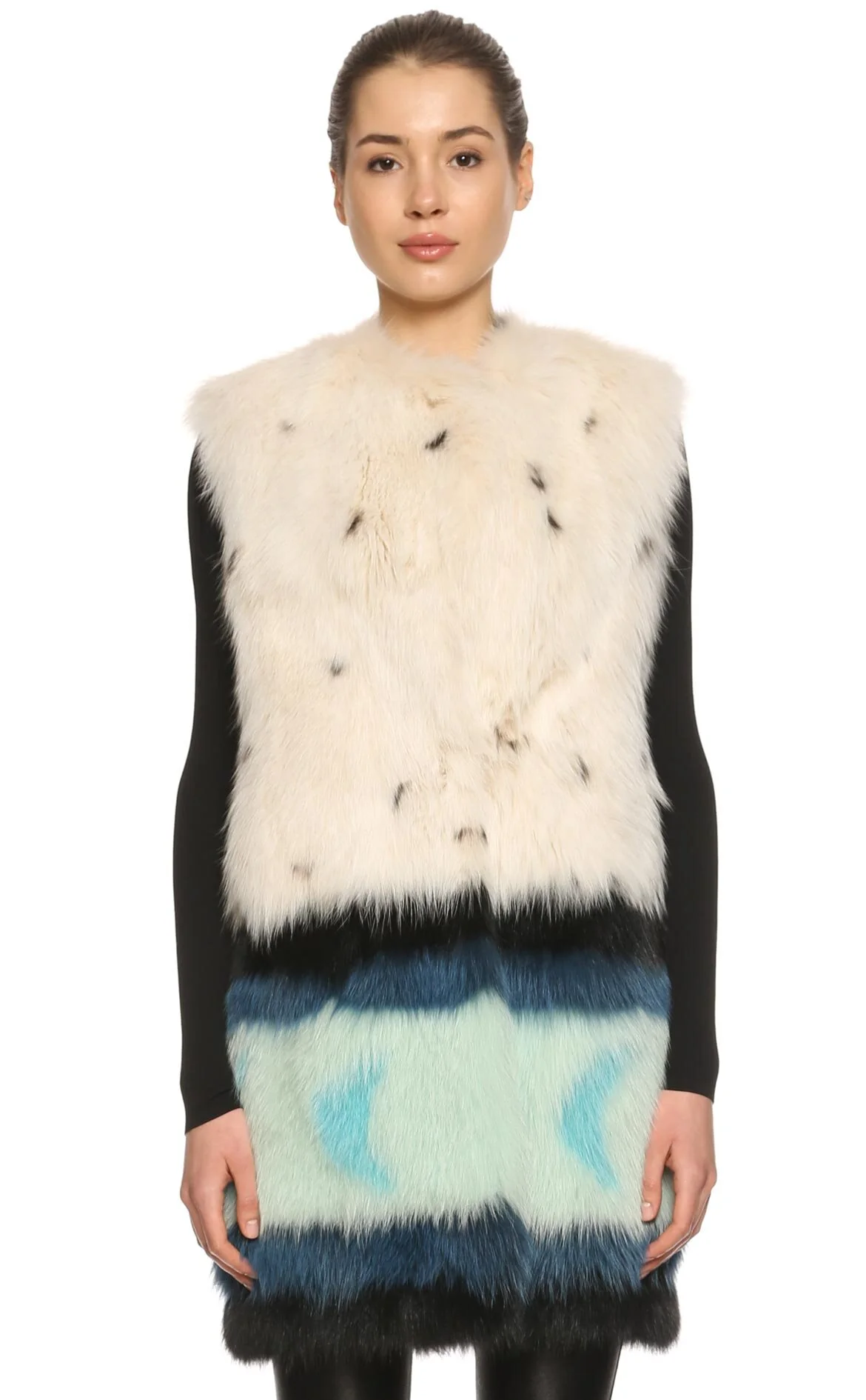 Mate Çok Renkli Kolsuz Yuvarlak Yaka Kürk Yelek