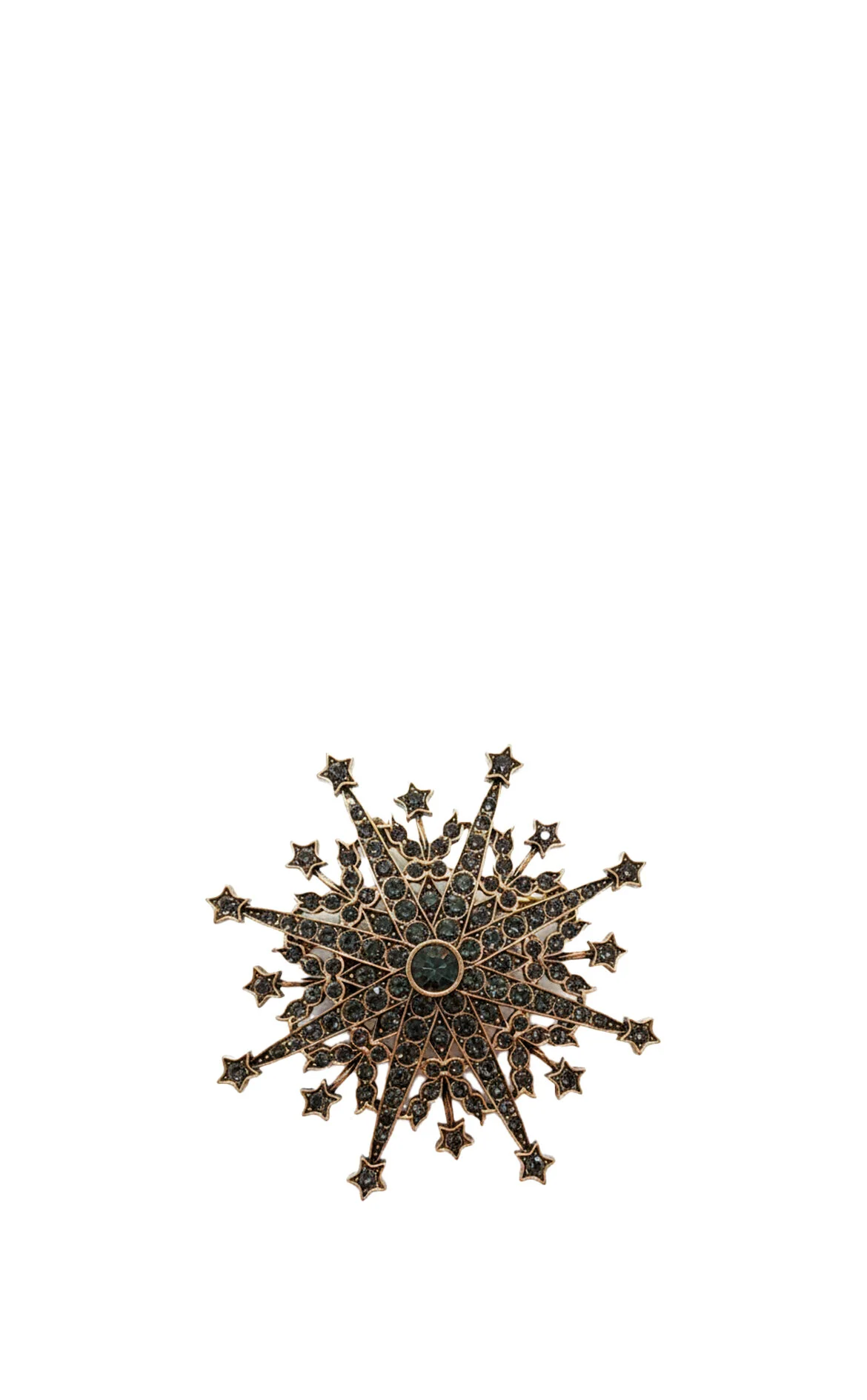 5. Altın Madeni Pirinç Kartanesi Hematit Zirkon Taşlı Broş