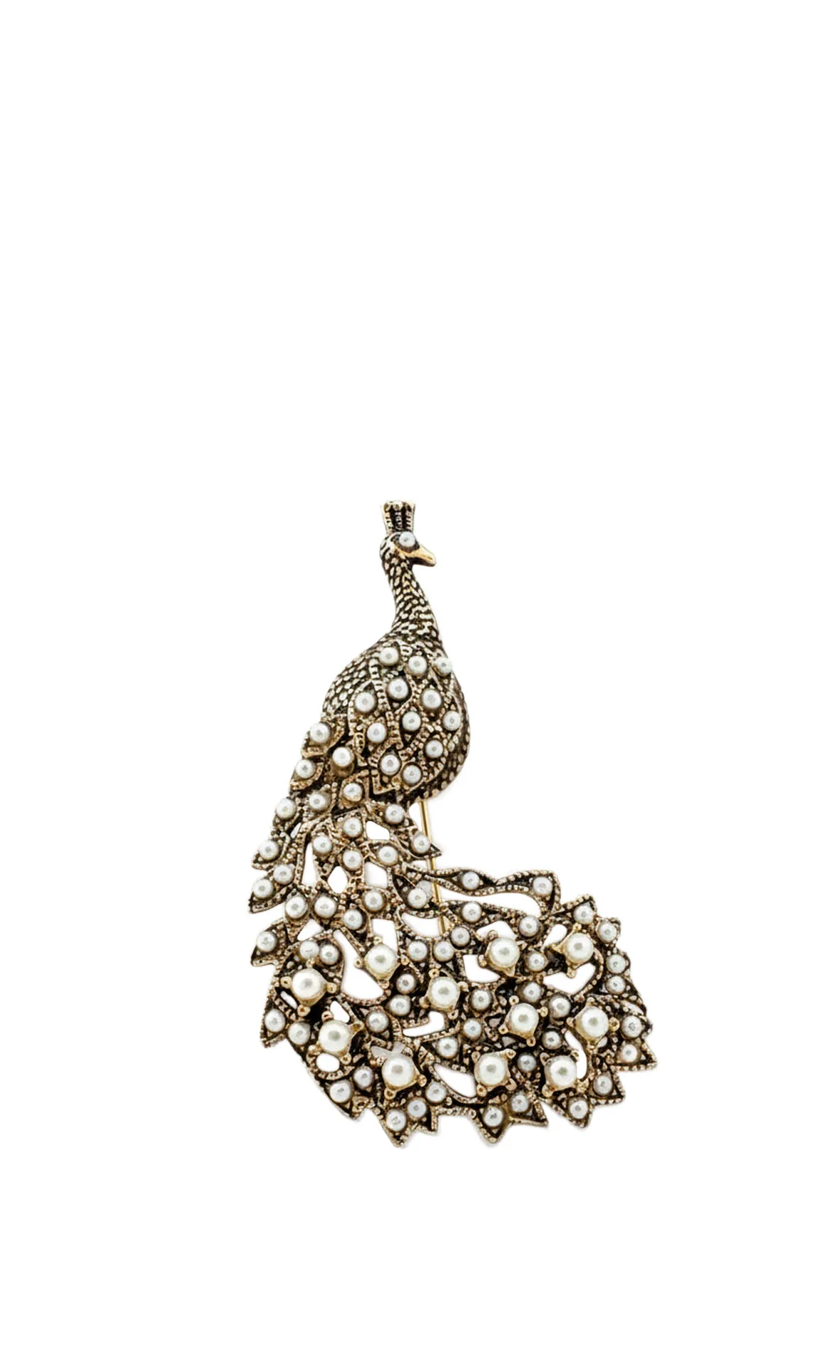 5. Altın Madeni Pirinç İncili Tavuskuşu Broş