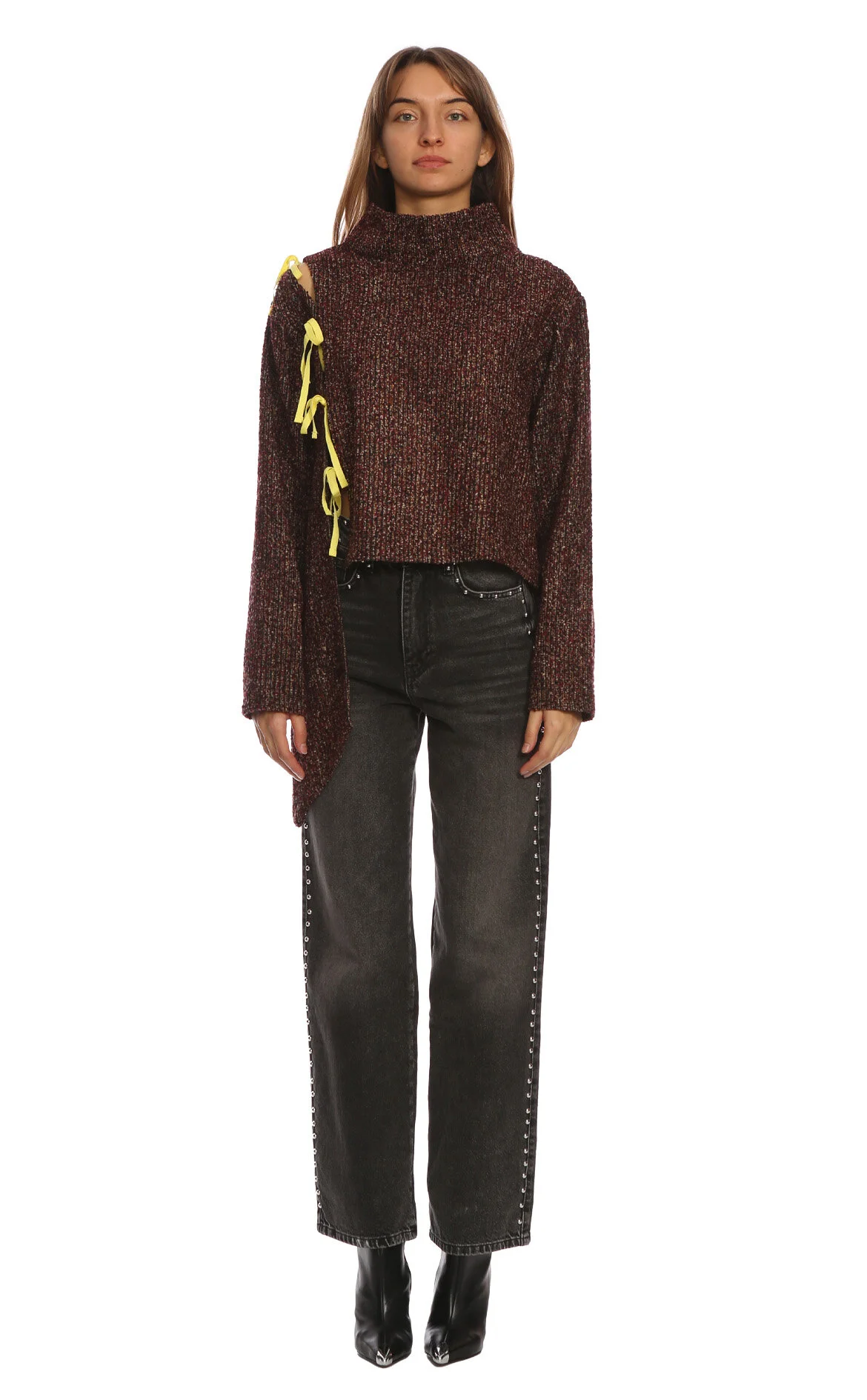 5. Kahverengi Asimetrik Kesim Uzun Kol Dik Yaka Kazak