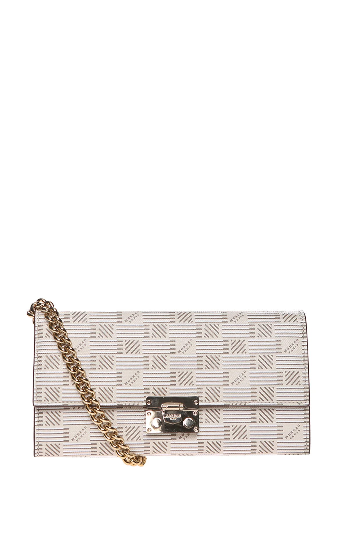 Moreau Paris Beyaz Geometrik Desenli Pamuk Keten Karışımlı Portfoy Çanta