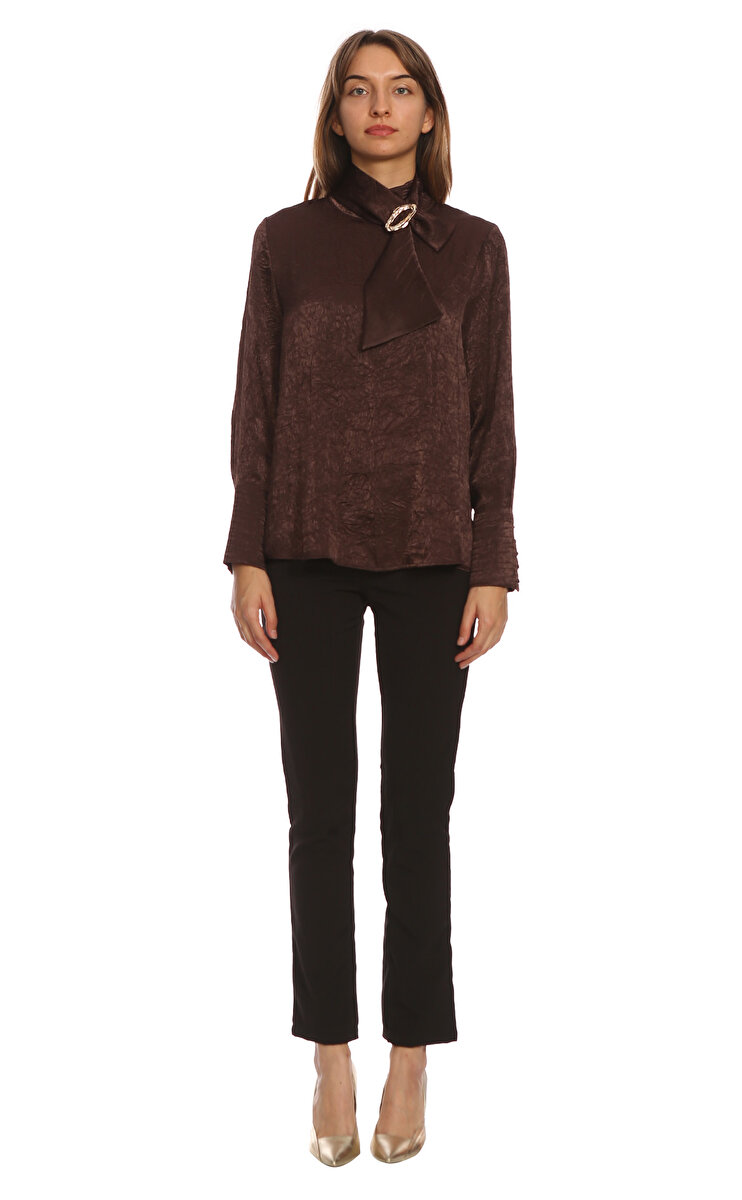 Bisiklet yaklı, uzun kollu, düz desenli, kahverengi Nagrada bluz
