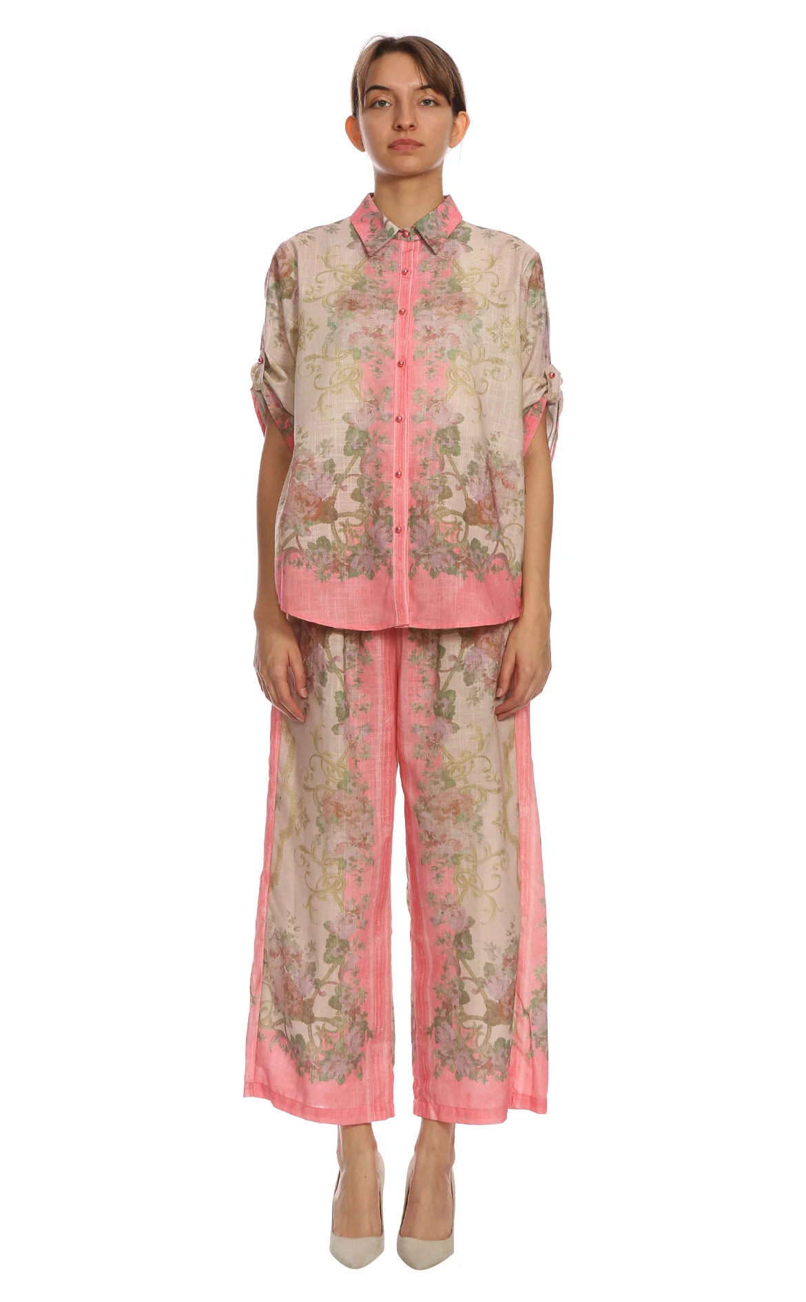 Nevada Love Çok Renkli Karışık Desenli Bol Paça Gömlek Yaka Kadın Takım