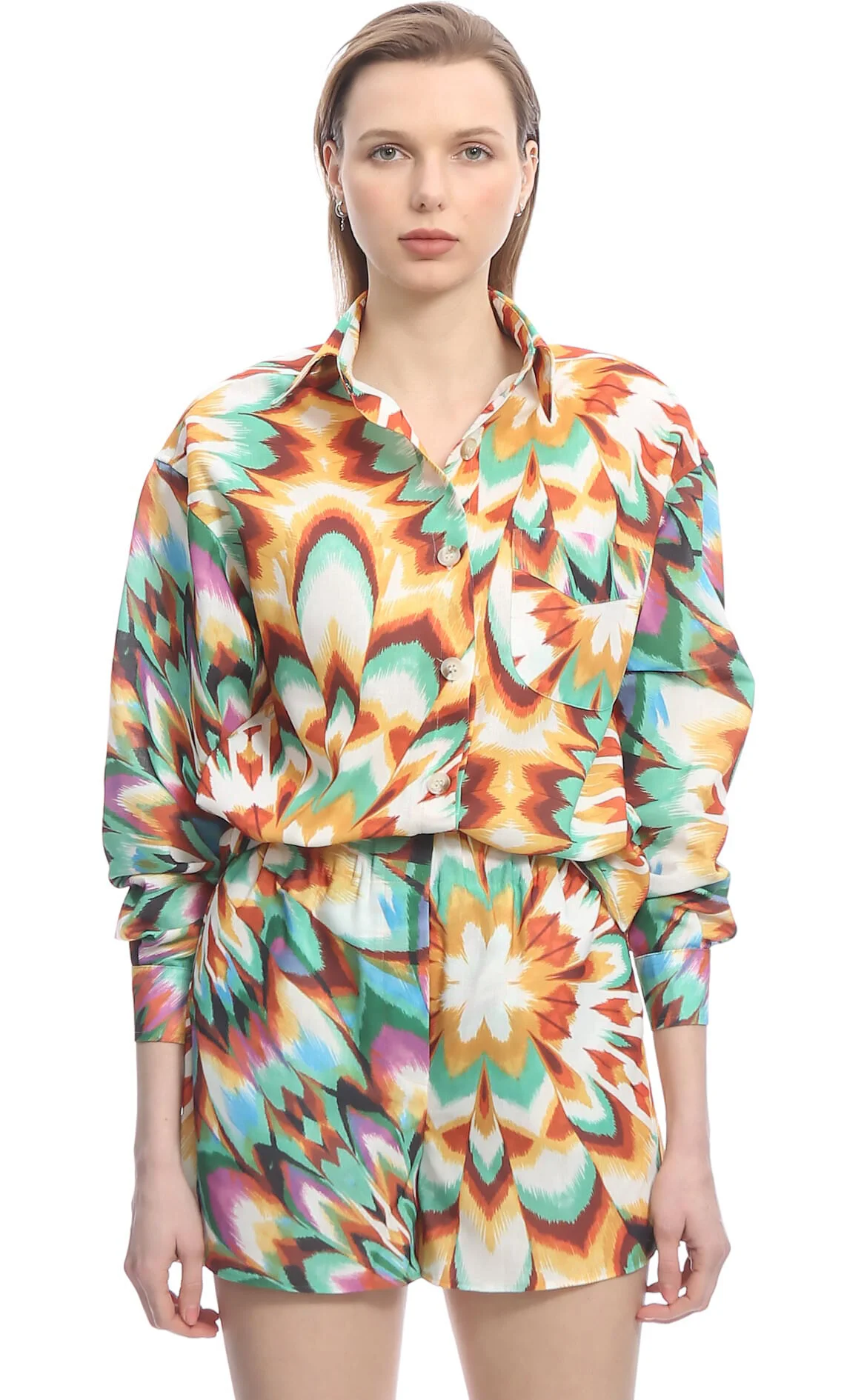 5. Çok Renkli Karışık Desenli Uzun Kollu Gömlek