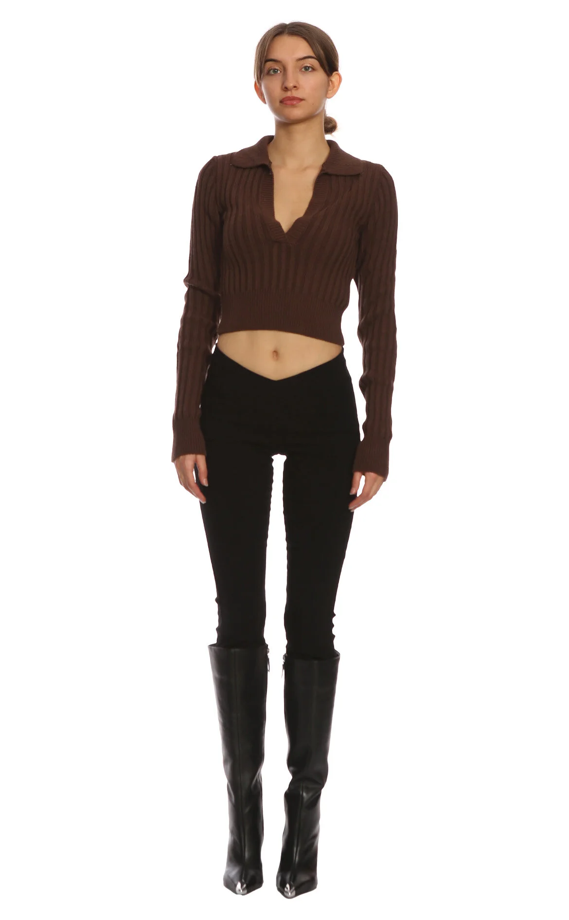 New In Kahverengi Uzun Kol Dik Yaka Kadın Kazak
