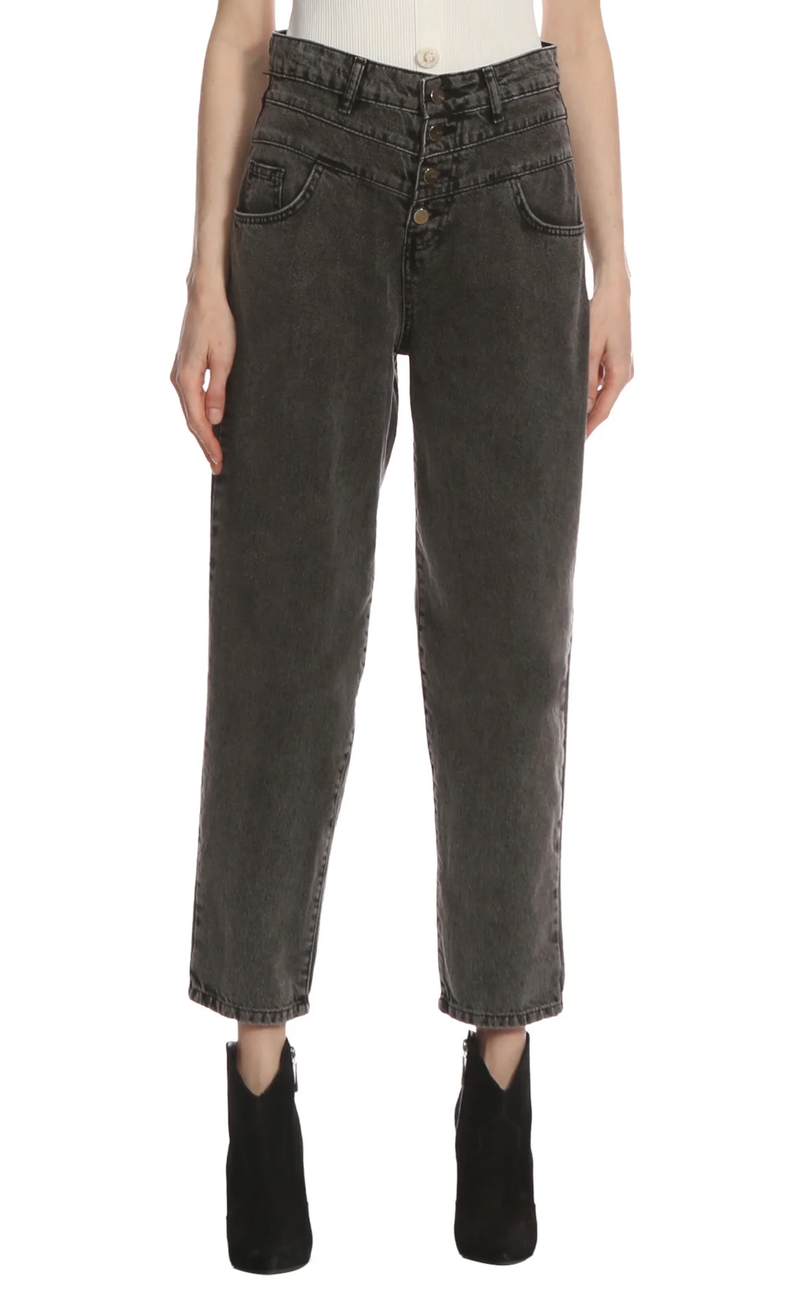 5. Gri Boru Pamuk Pantolon