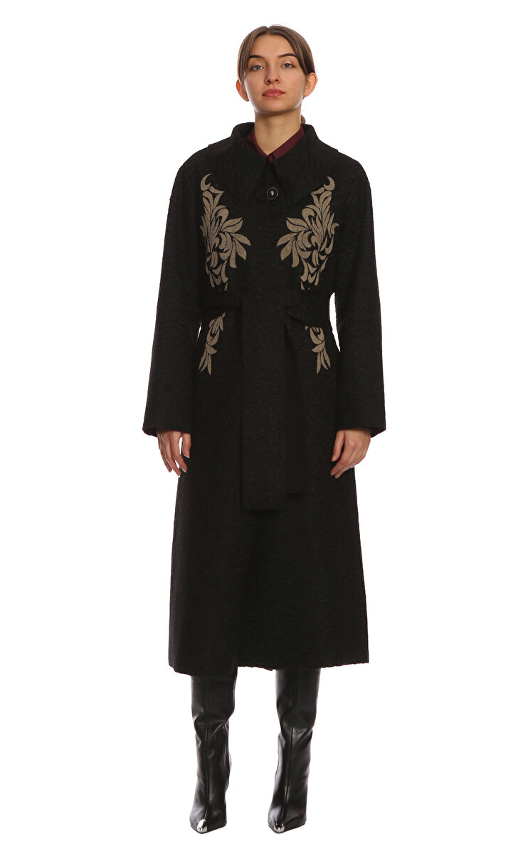 Kruvaze yakalı, uzun kollu, karma desenli, siyah Noi kaban