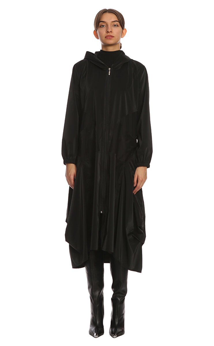 Kapüşon yakaklı, uzun kollu, cepli, düz desenli, siyah Noi yağmurluk