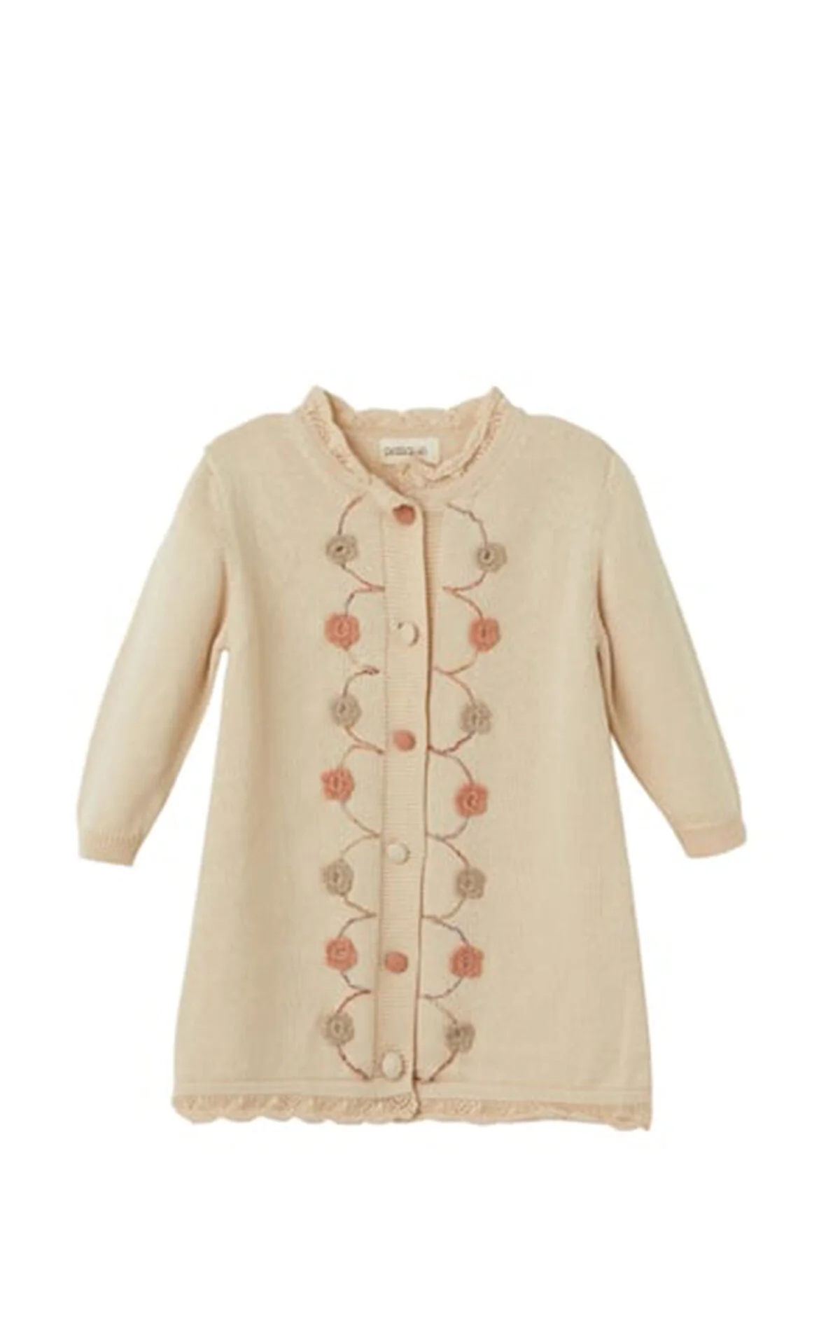 Patique Bej Çiçek Nakışlı Pamuk Triko Kız Çocuk Elbise