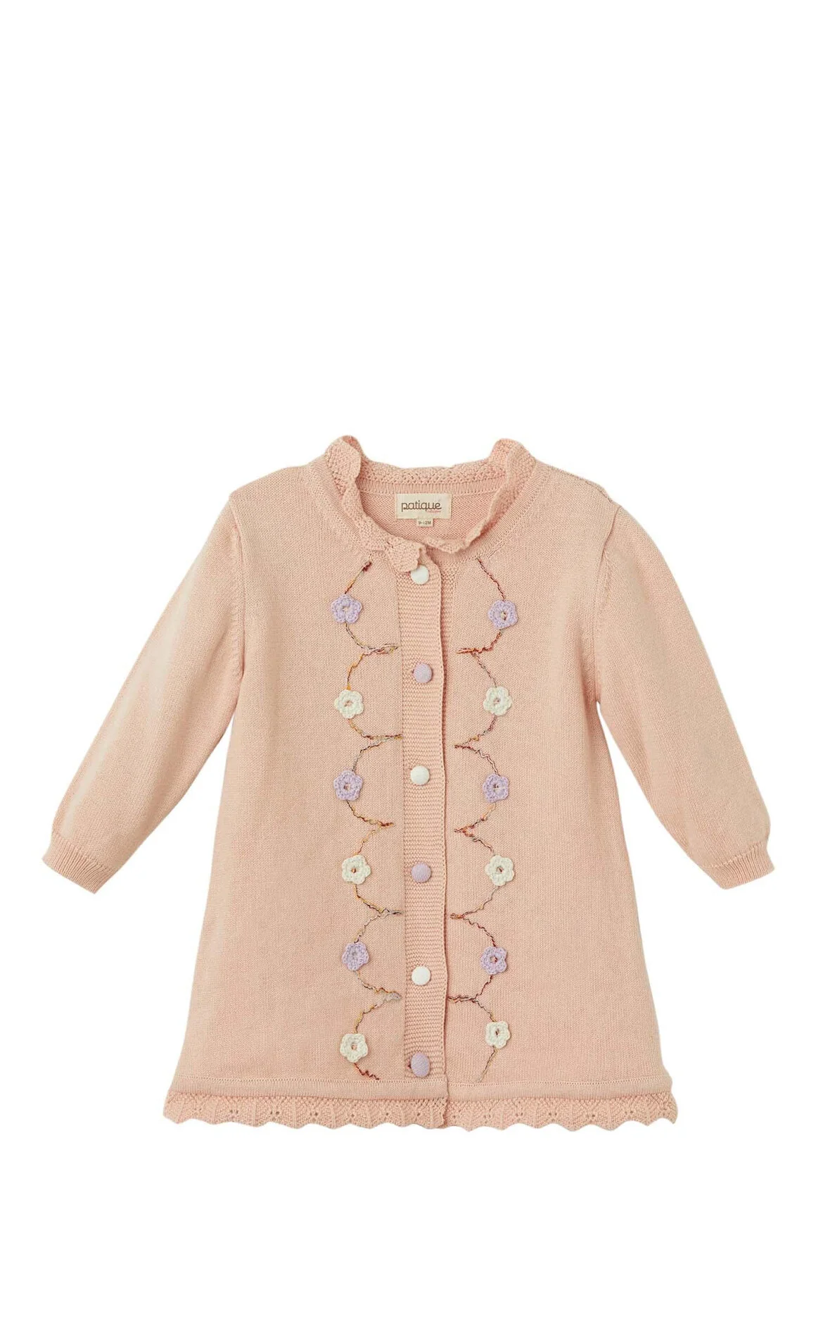 Patique Pembe Çiçek Nakışlı Pamuk Triko Kız Çocuk Elbise