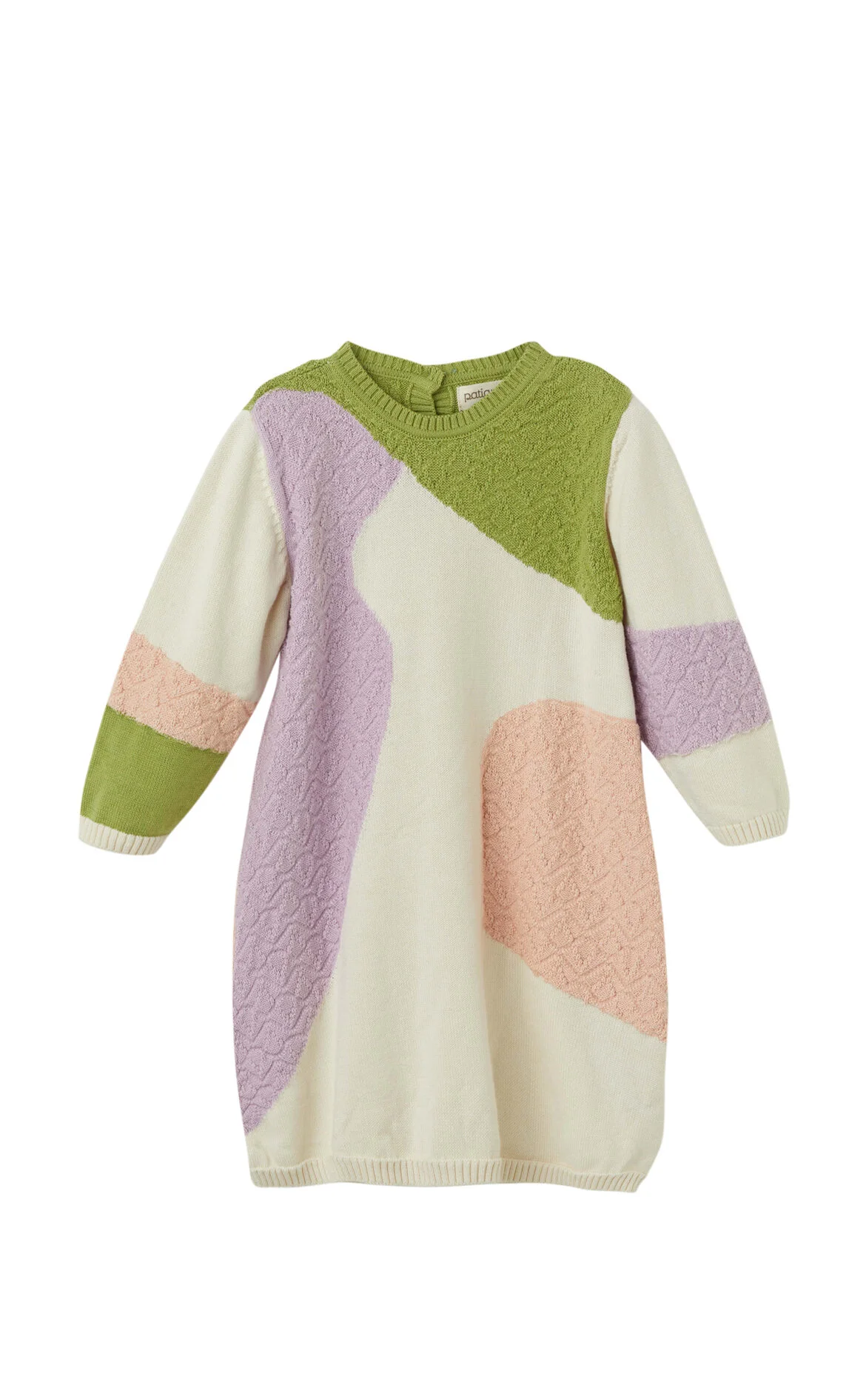 Patique Çok Renkli Örgü Detaylı Uzun Kol Bisiklet Yaka Pamuk Maksi Boy Triko Kız Çocuk Elbise1.489,90 TL