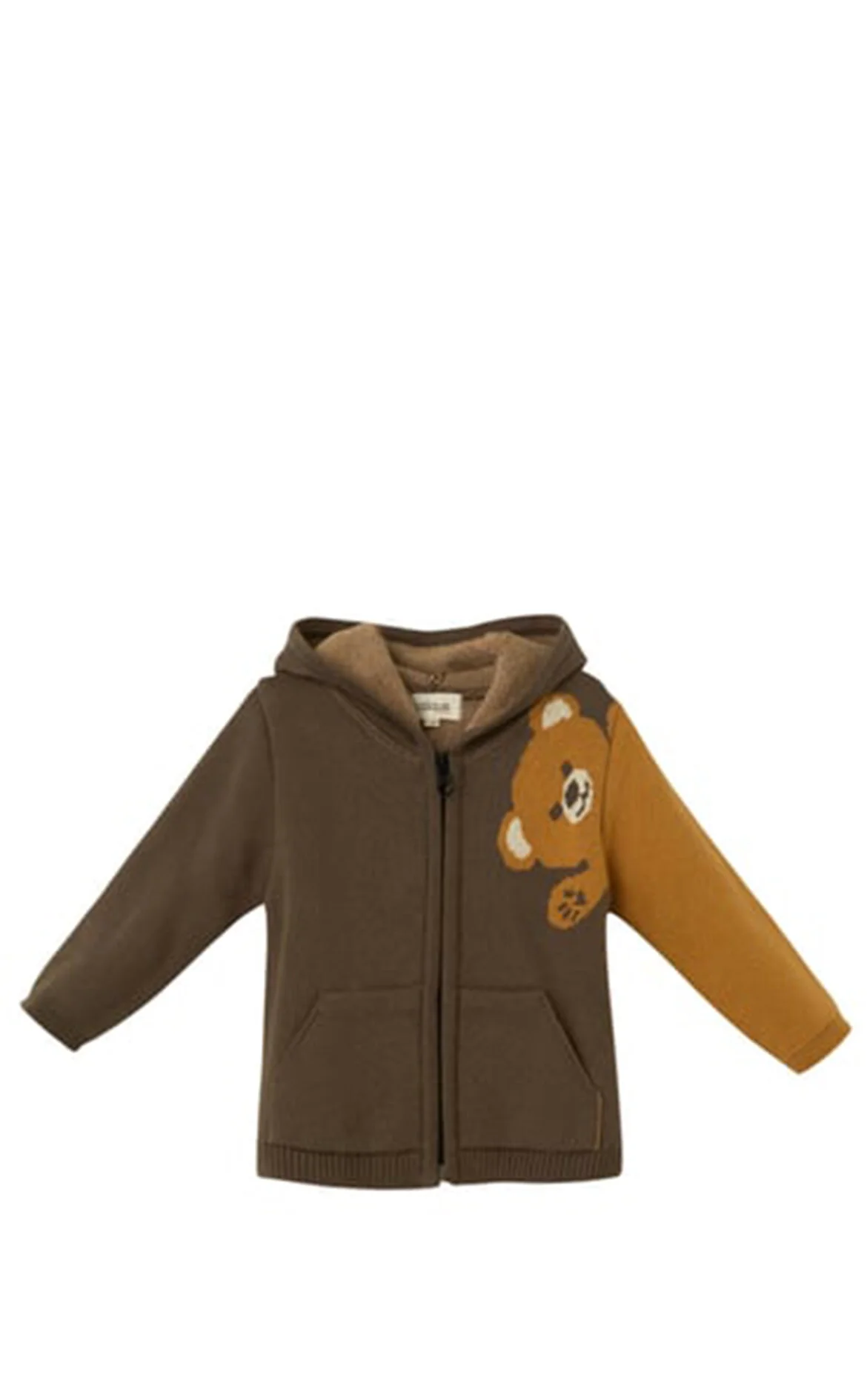 Patique Kahverengi Pamuk Kapüşonlu Hırka