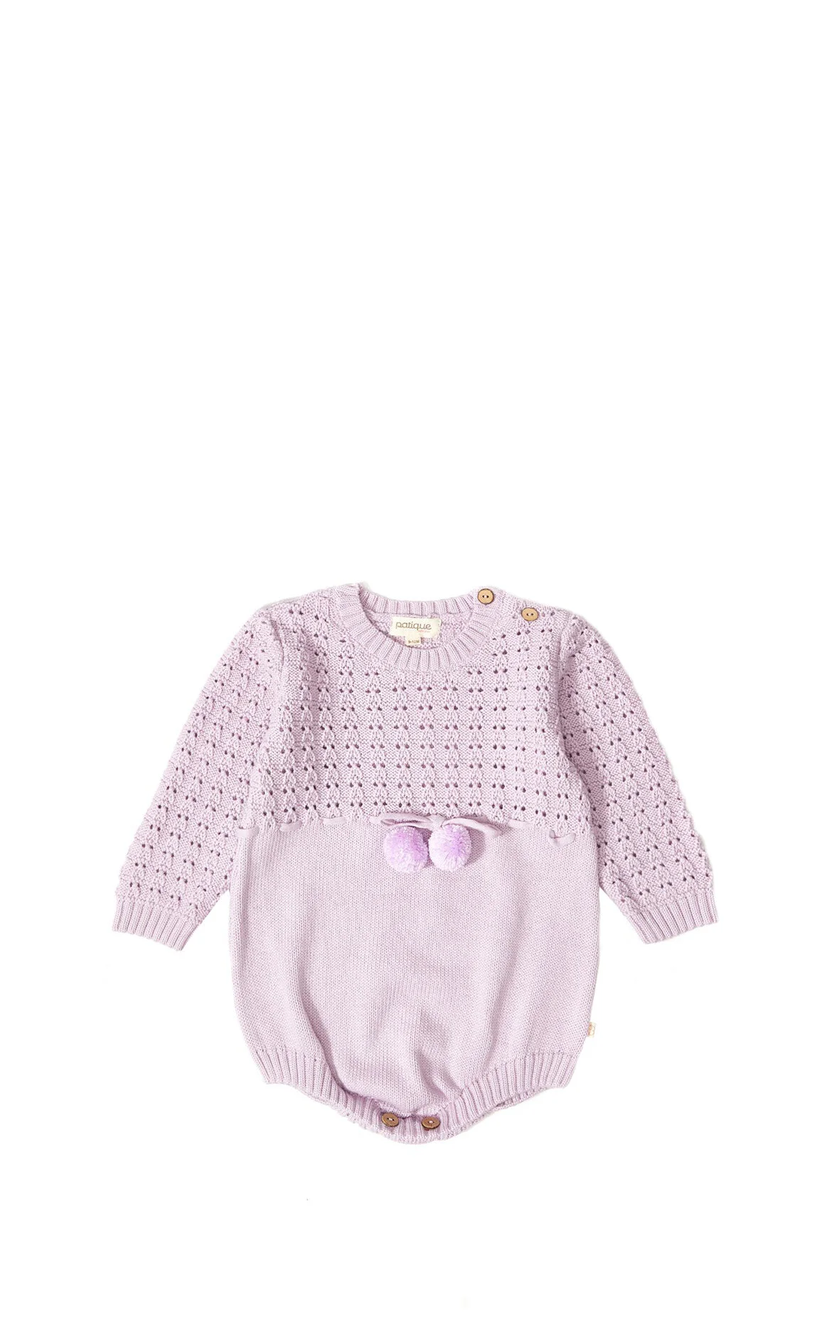 Patique Lila Örgü Uzun Kollu Organik Pamuk Salopet