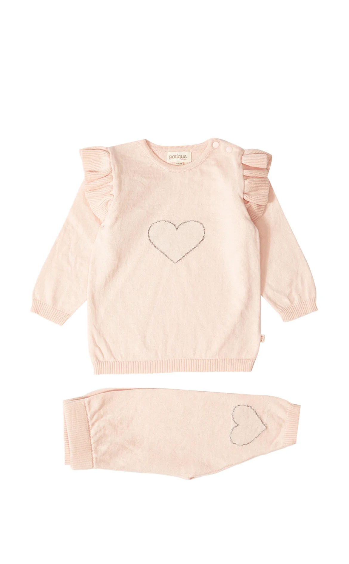 Patique Pembe Kalp Desenli Fırfırlı Pamuk Takım