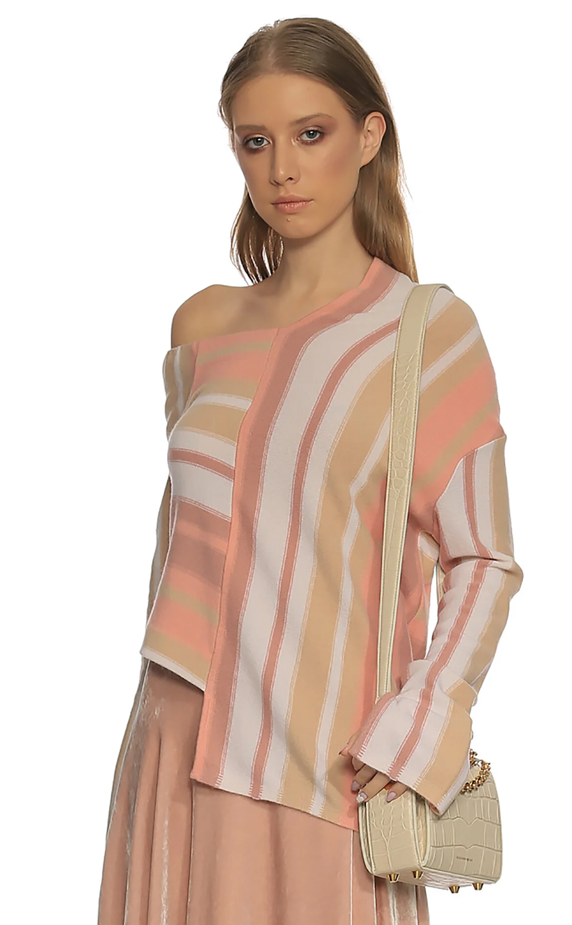 3. Pembe Çizgili Uzun Kol Kayıkçı Yaka Yünlü Kadın Kazak