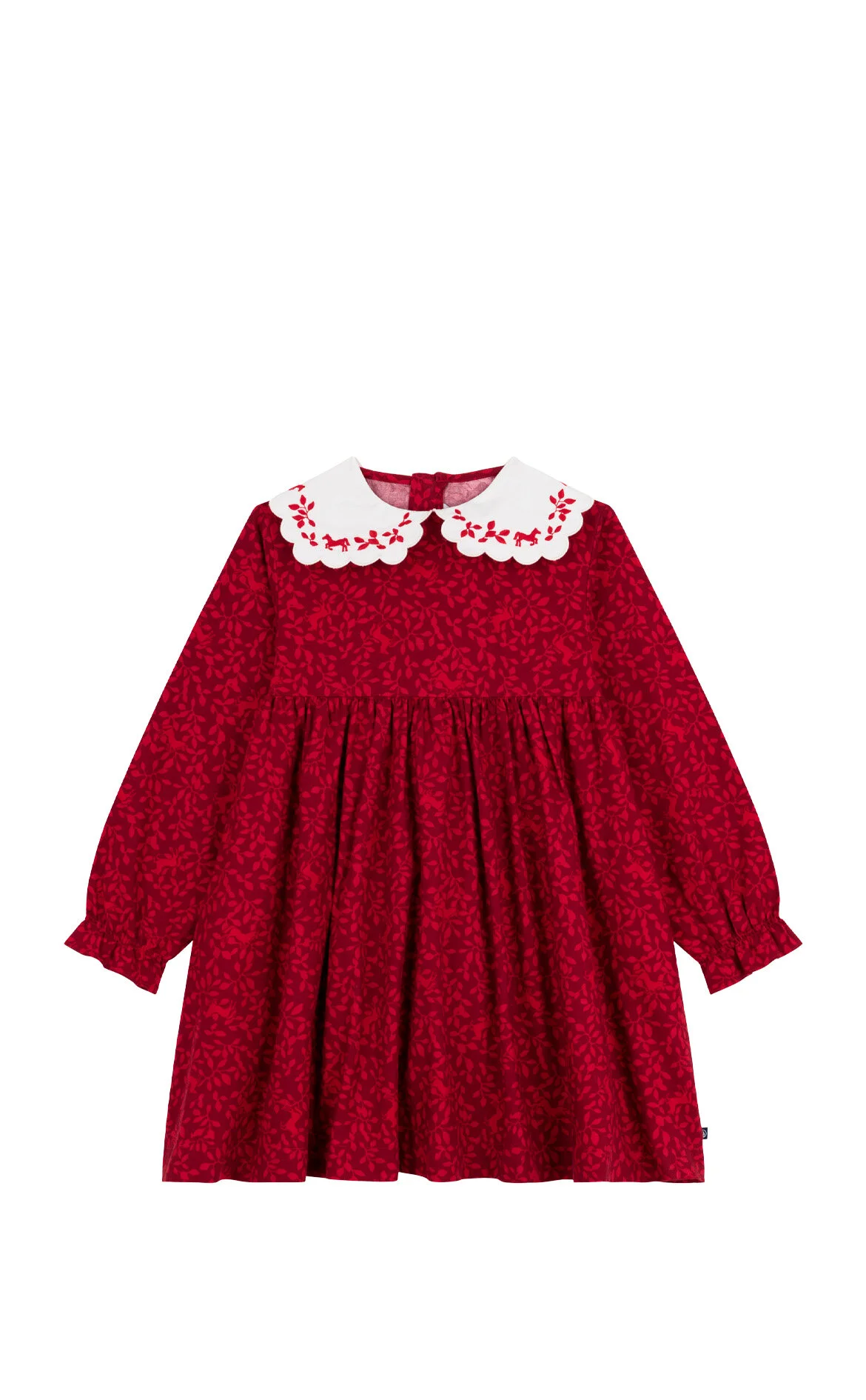 Petit Bateau Çok Renkli Çiçek Desenli Uzun Kol Pamuk Kız Çocuk Elbise