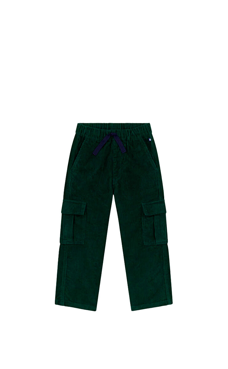 Düz renk, fitilli kadife kumaştan, erkek çocuk cargo pantolon. Konforlu, trend ve kış için ideal. İpi geçirmeli esnek bel. Üstte eğimli cepler ve bacaklarda yama cepler.