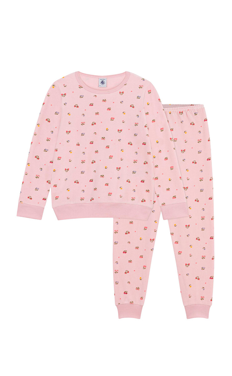 Sıcak ve çok şık bir kumaş olan kadife velourdan üretilmiş kız çocuk pijaması. Esnek bel bandına sahiptir. Yaka ve manşetler düz 1x1 ribana örgüsünden yapılmıştır.