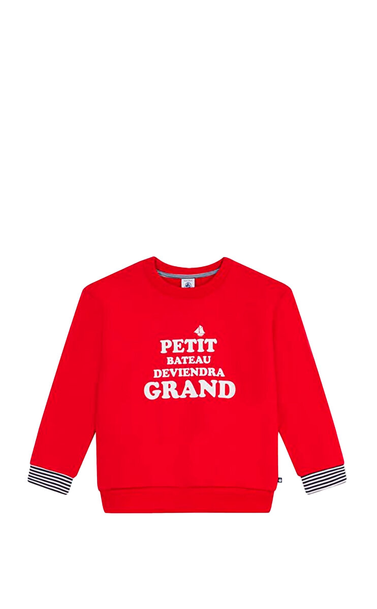 Çocuklar için baskılı pamuk sweatshirt. GDO'suz ve çevre dostu tarım uygulamalarıyla yetiştirilmiş organik pamuktan üretilmiştir. Unisex, yumuşak, rahat polar sweatshirt. Yaka, manşet ve etek ucu ribanası. Düşük kol oyuntuları.