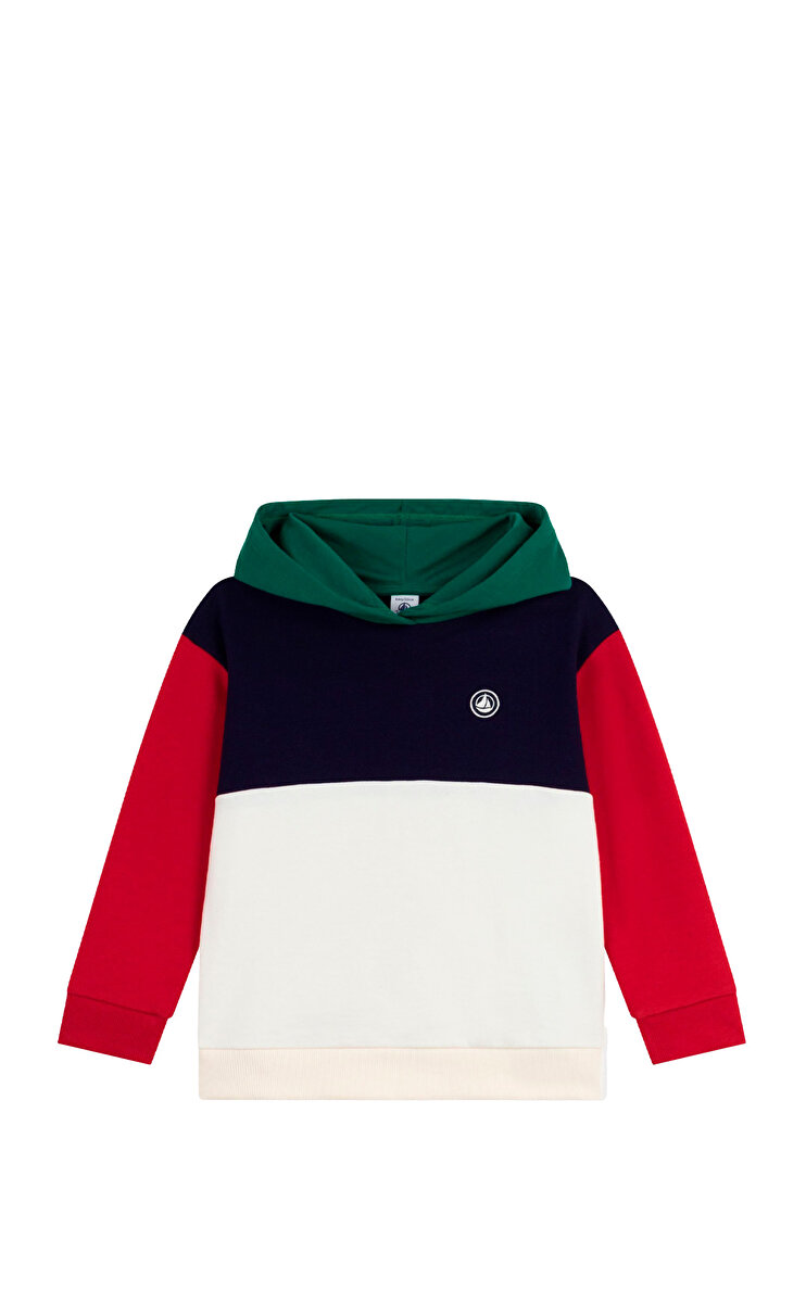 Yumuşak ve rahat polar malzemeden üretilmiş erkek çocuk kapüşonlu sweatshirt. Düşük kol oyuntularına sahiptir. Göğüs bölgesinde nakışlı bir rozet bulunur.