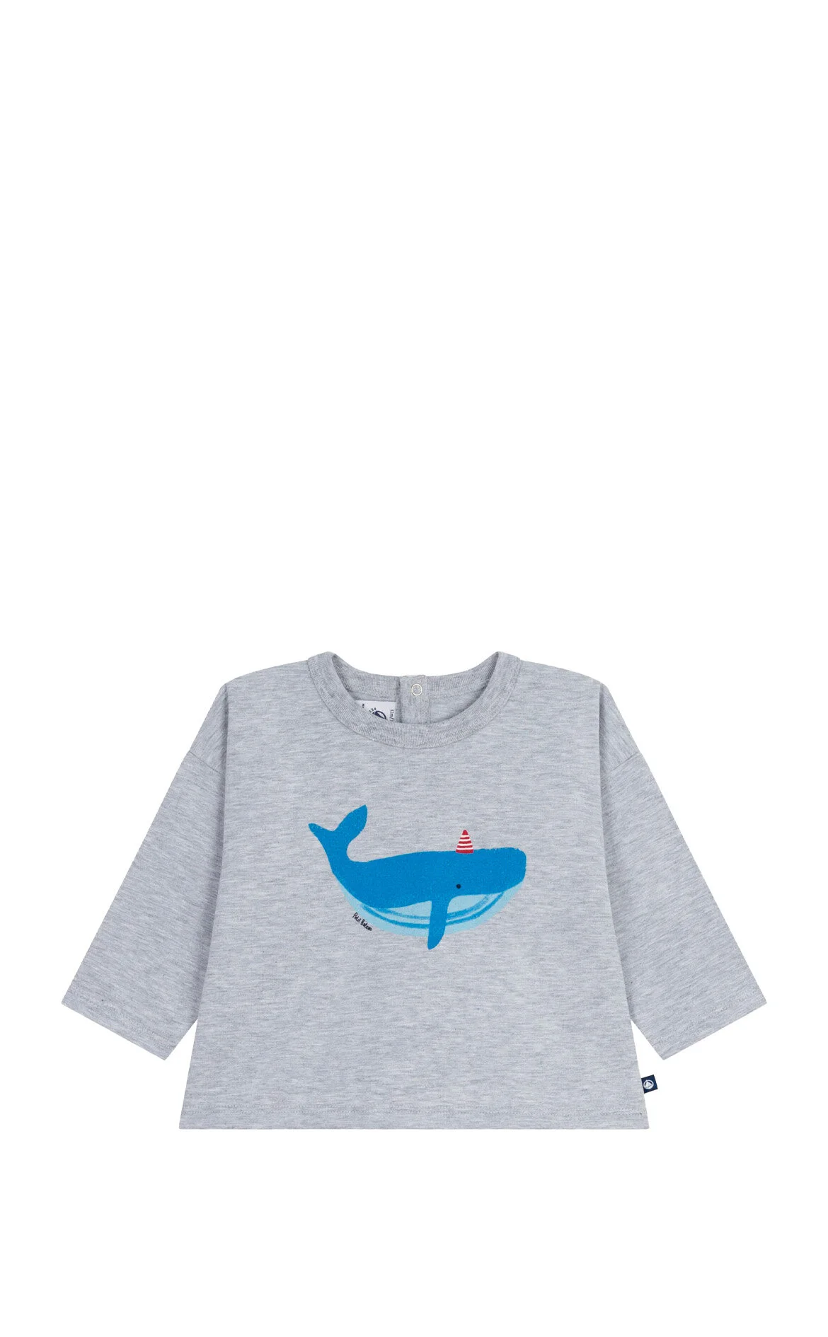 Petit Bateau Balina Desenli Uzun Kollu Gri Bebek Tişört