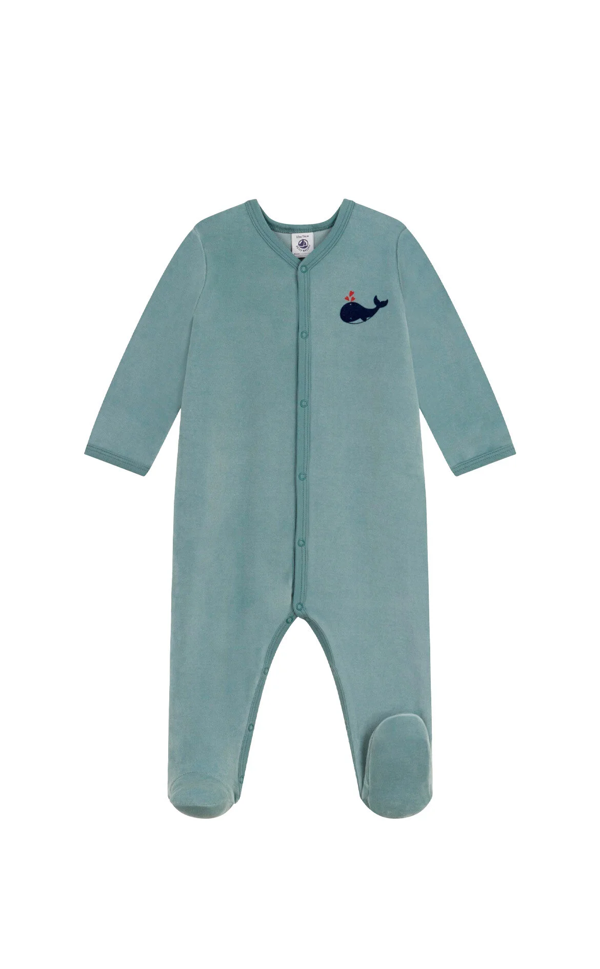 Petit Bateau Petrol Yeşili Balina Detaylı Uzun Kol V Yaka Pamuk Unisex Ayaklı Tulum