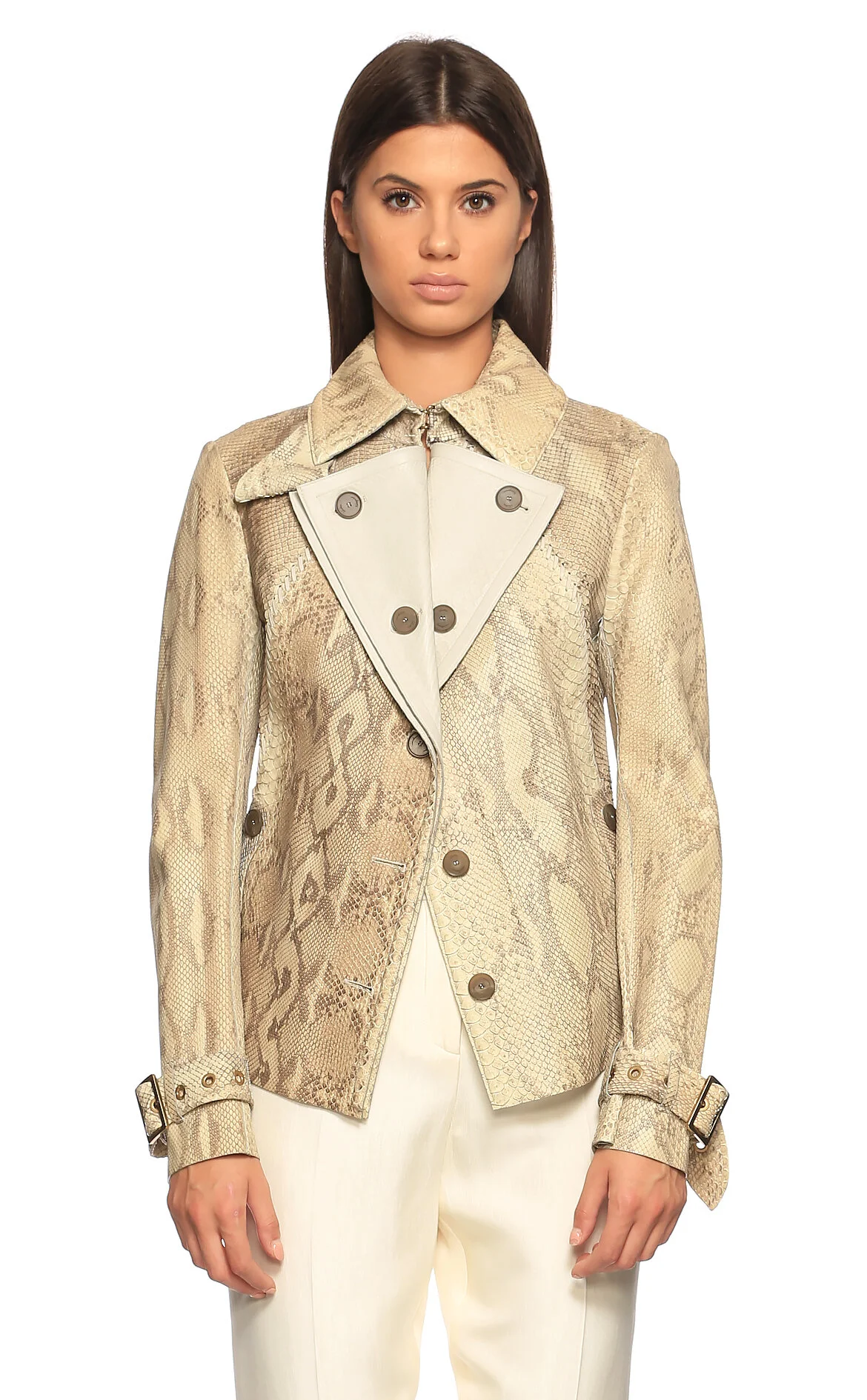 5. Çok Renkli Yılan Derisi Desenli Uzun Kol Piton Derisi Ceket