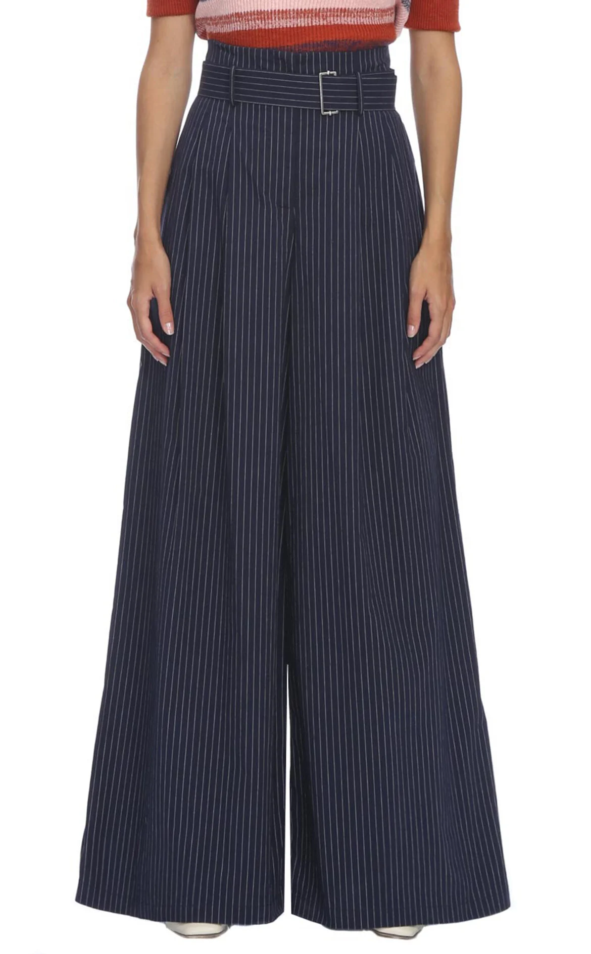 3. Lacivert Çizgili Geniş Paça Pamuk Pantolon