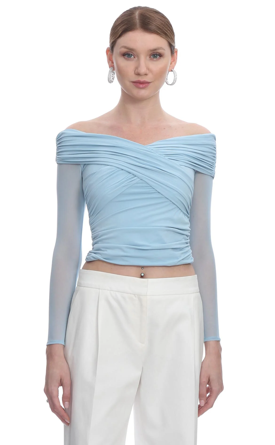 4. Mavi Uzun Kol Kayık Yaka Bluz