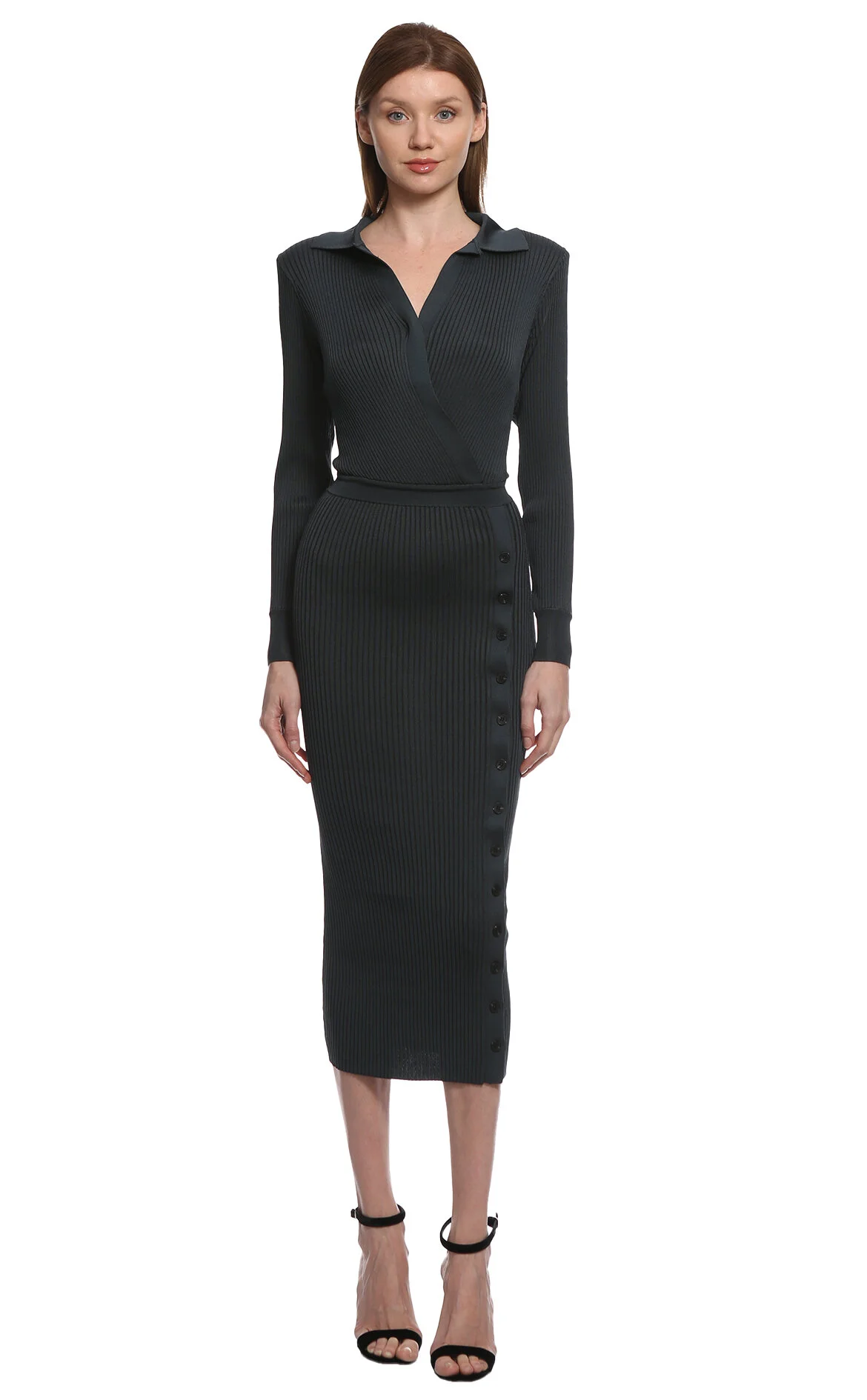 Self Portrait Yeşil Uzun Kol Gömlek Yaka Midi Boy Elbise