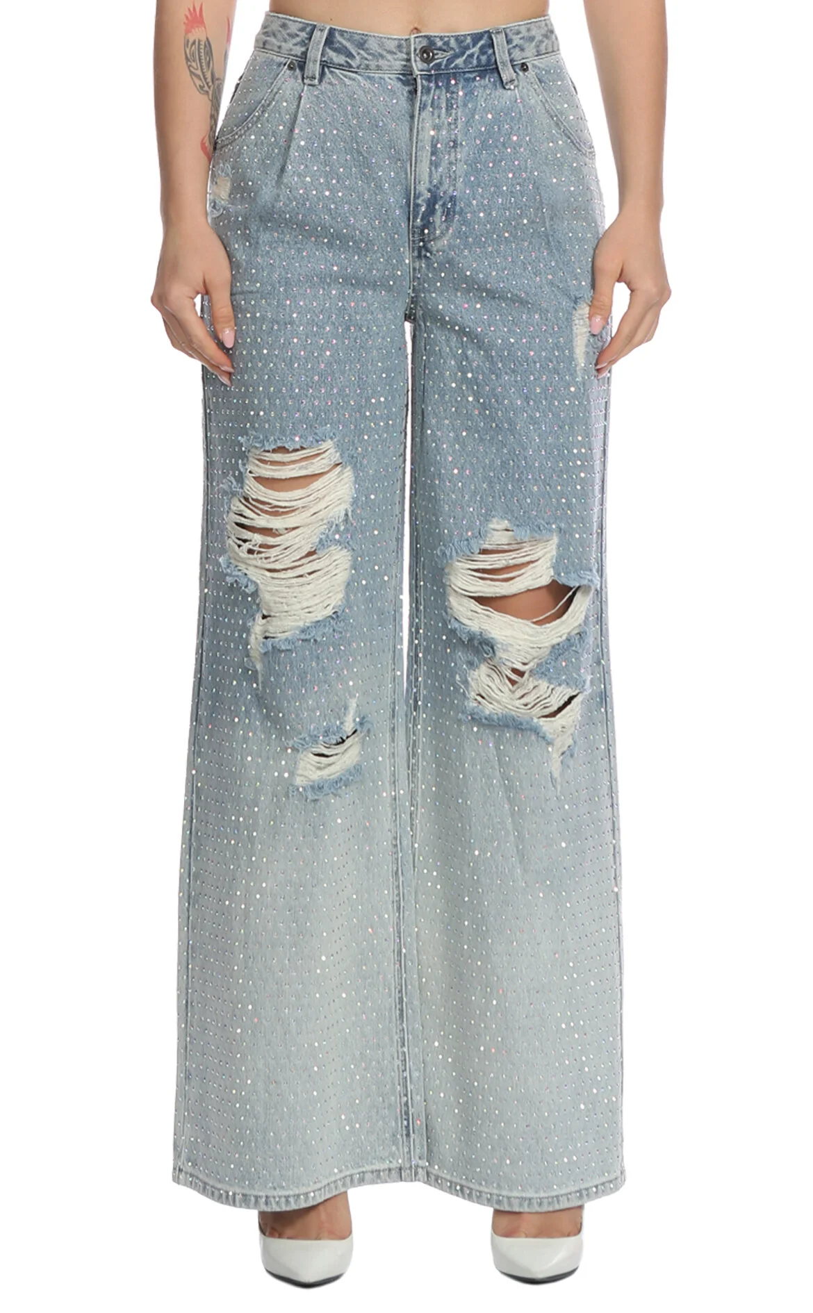 5. Mavi Taş İşlemeli Bol Paça Kot Pantolon