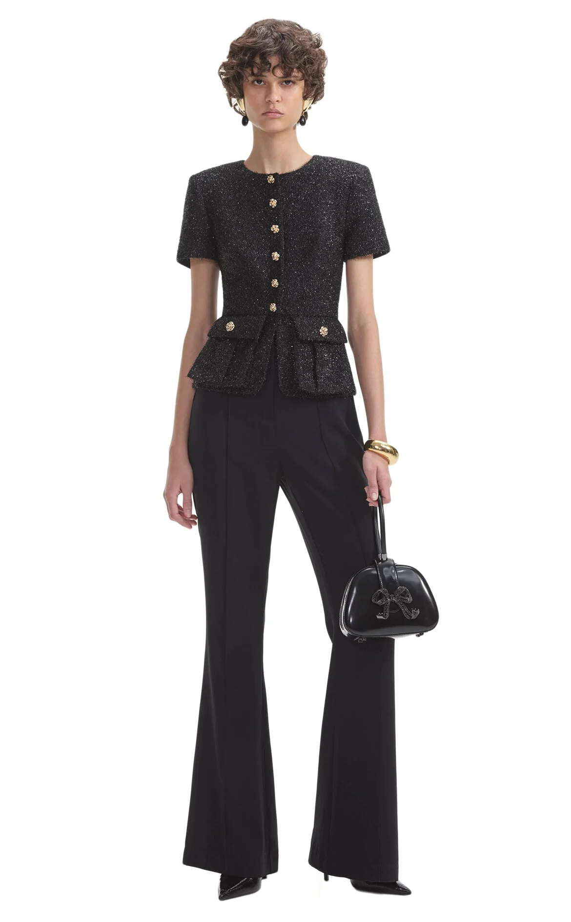 Self Portrait Siyah Simli Kısa Kol İspanyol Paça Tulum