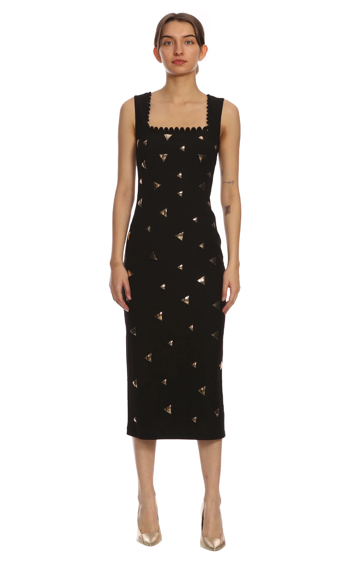 5. Siyah Askılı Kare Yaka Midi Boy Elbise