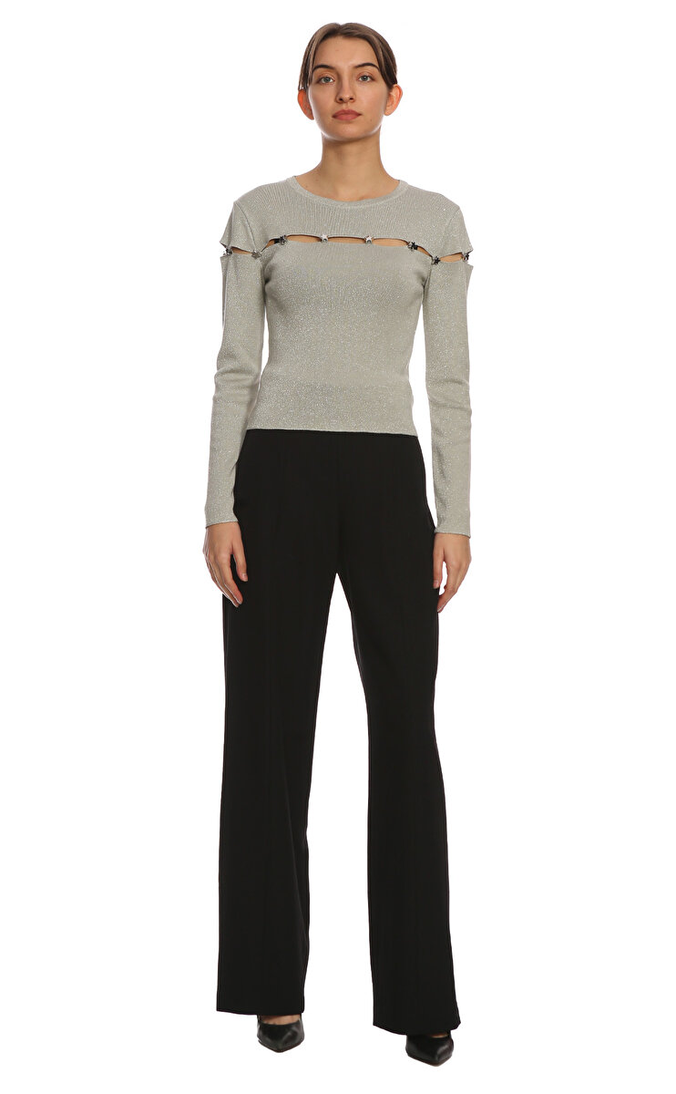 Bisiklet yakalı, uzun kollu, düz desenli, gri Selyns bluz
