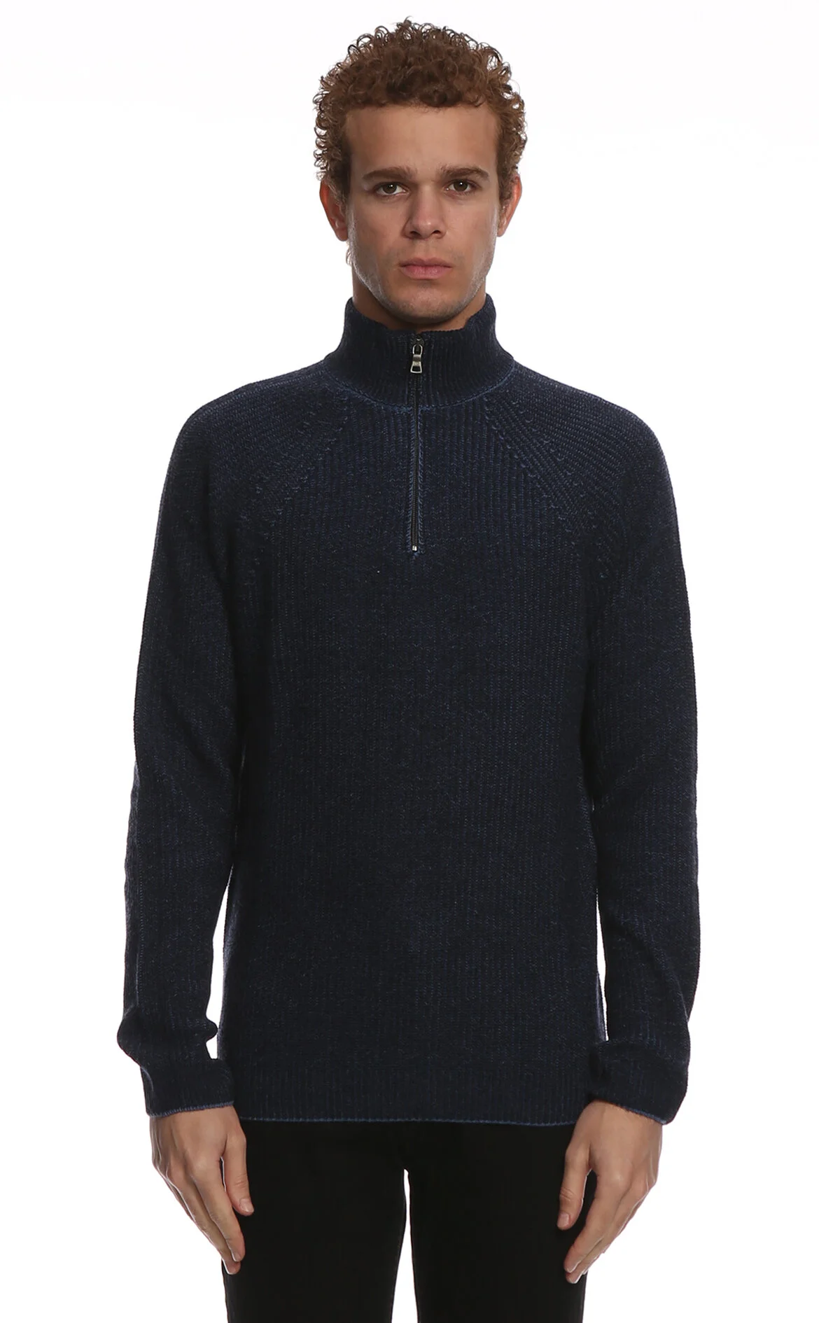 5. Mavi Uzun Kol Yarım Dik Yaka Yünlü Erkek Kazak