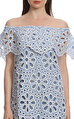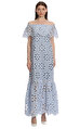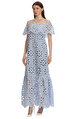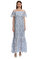 Kare yakalı, sıfır kollu, işleme desenli, maxi boylu, mavi Silvian Heach elbise