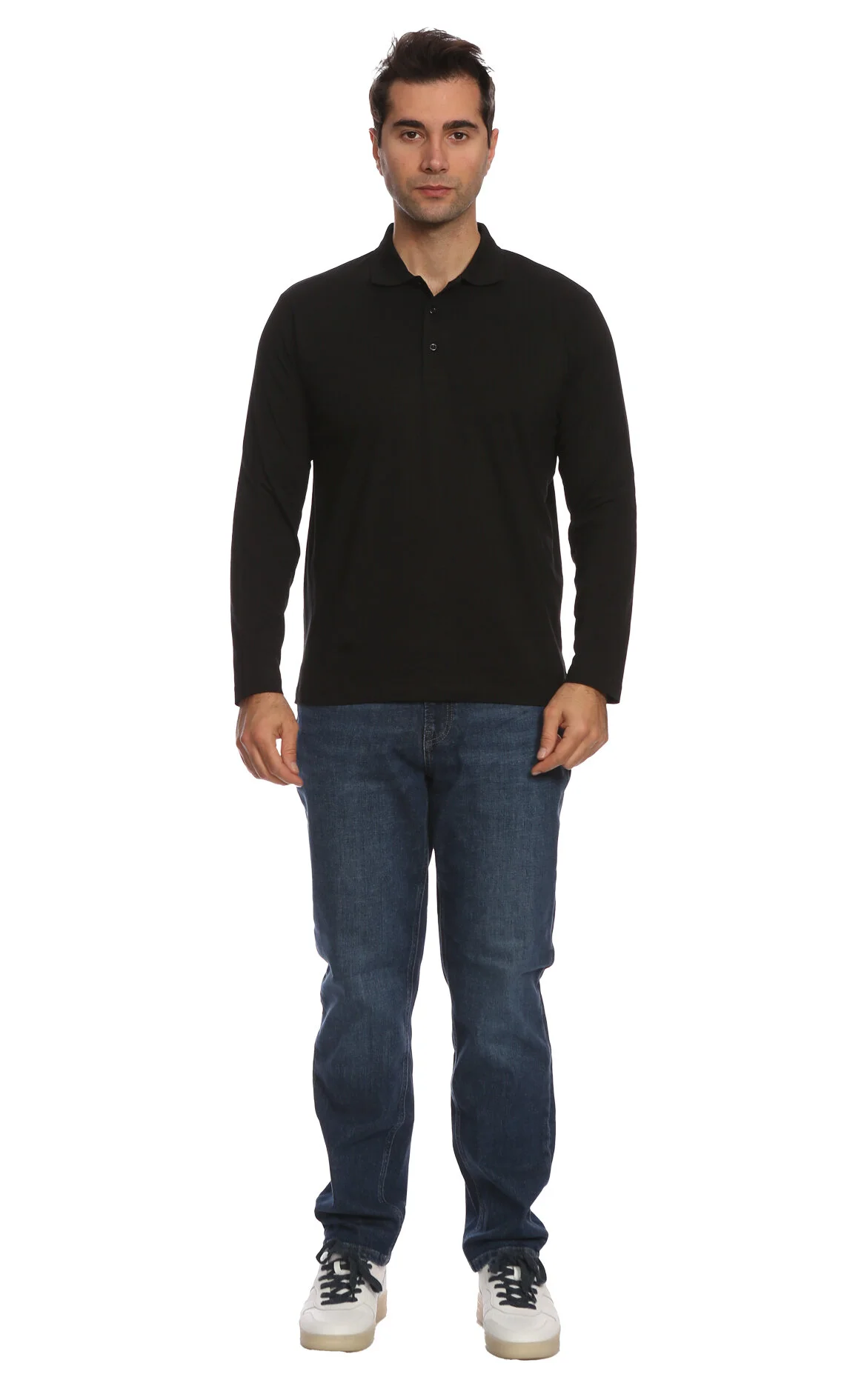 5. Siyah Polo Yaka Uzun Kollu Pamuk Erkek T-Shirt