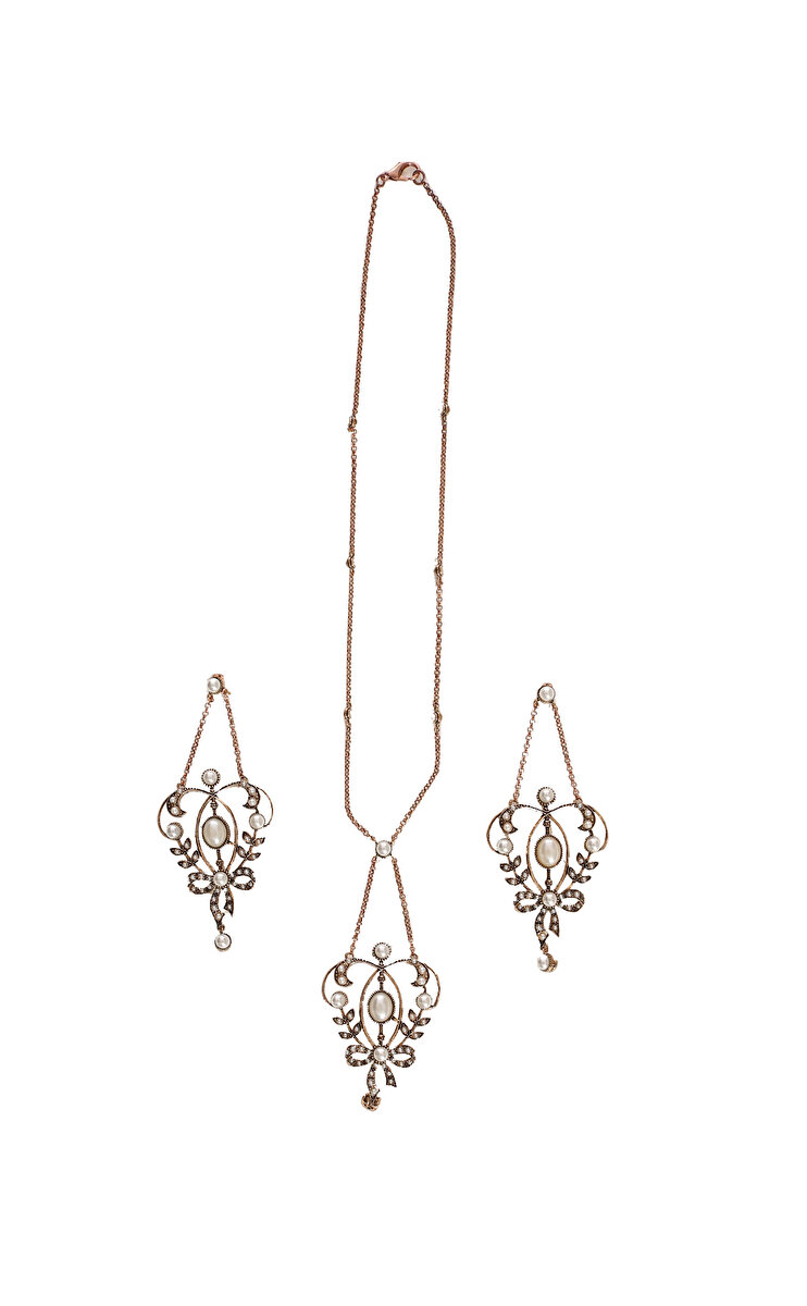 Taş işleme desenli, kolye ve küpe, kahverengi Sofia's Zoo set