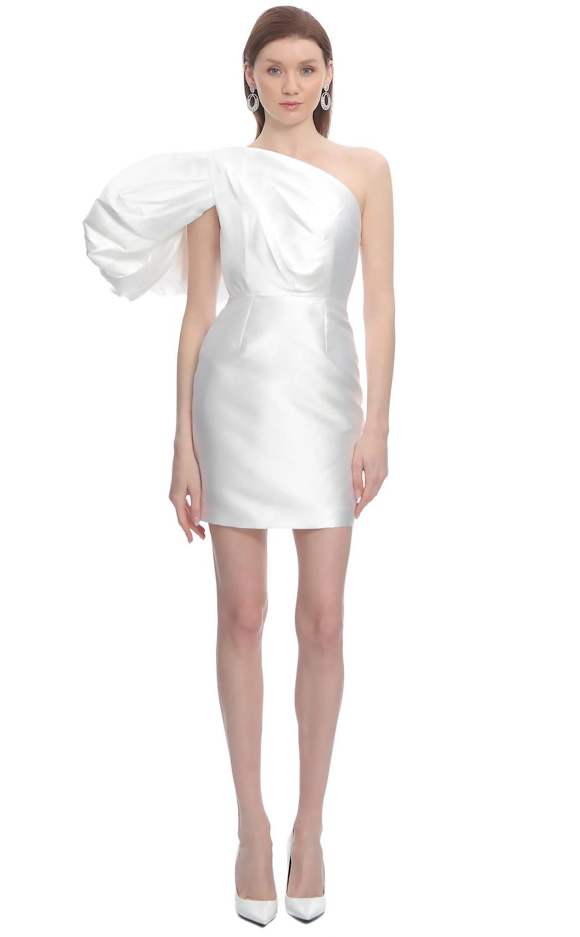 Solace London Beyaz Tek Omuz Asimetrik Yaka Mini Boy Elbise